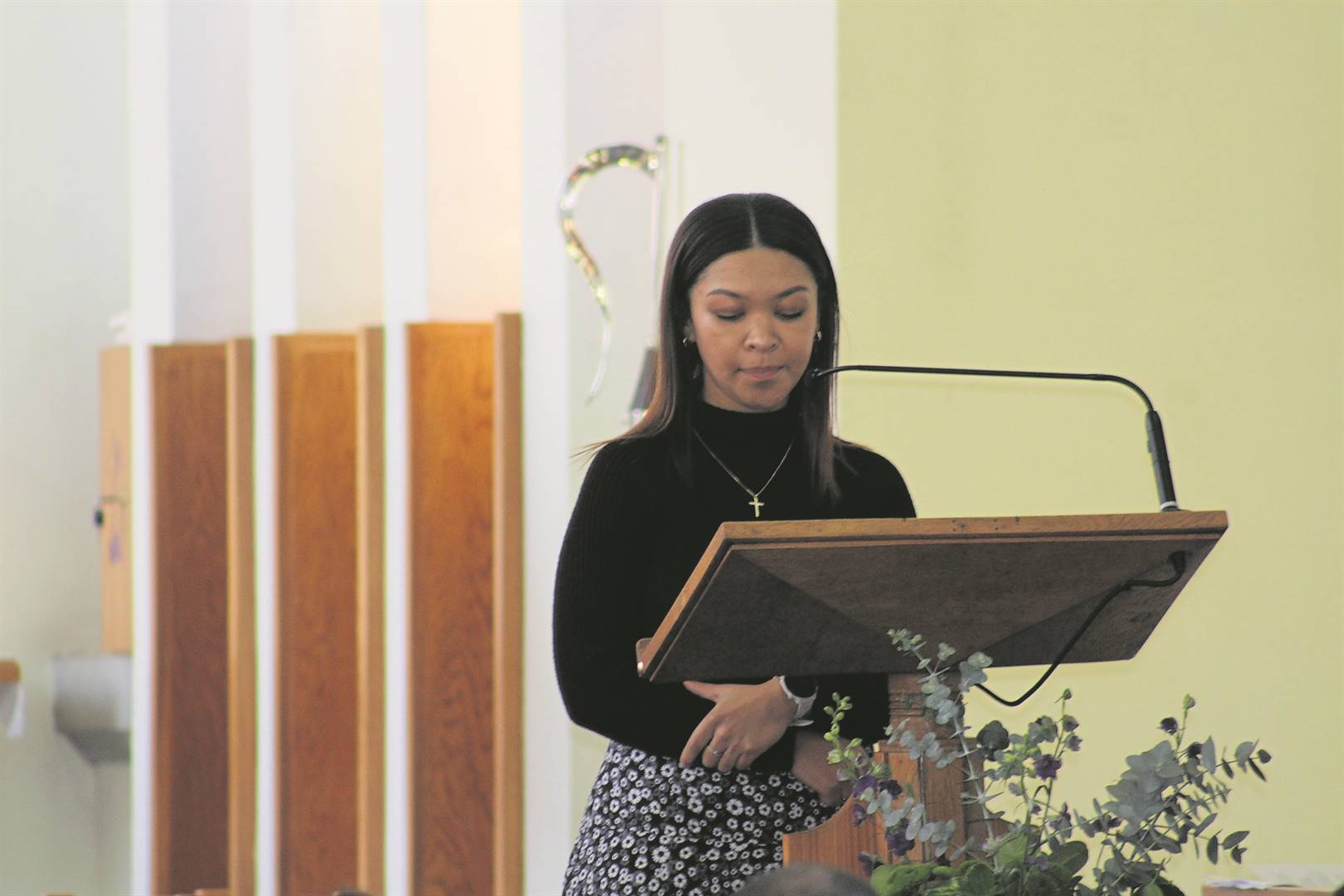 “Die gospel wys vir ons dat Jesus die pyn van die dood en vertrek met sy vriende met ons gedeel het. Maar Hy het vir hulle gesê terwyl ons vanoggend in die skrif lees, moenie bekommerd wees nie, moenie ontsteld wees nie, glo in God en ook in My, want Ek gaan vir julle ’n plek voorberei. Ja, jy het dalk nou hartseer. Jy kan op hierdie oomblik pyn hê. Maar, Hy sê ‘Ek sal julle weer sien en wanneer Ek julle weer sien sal julle harte bly wees’.”