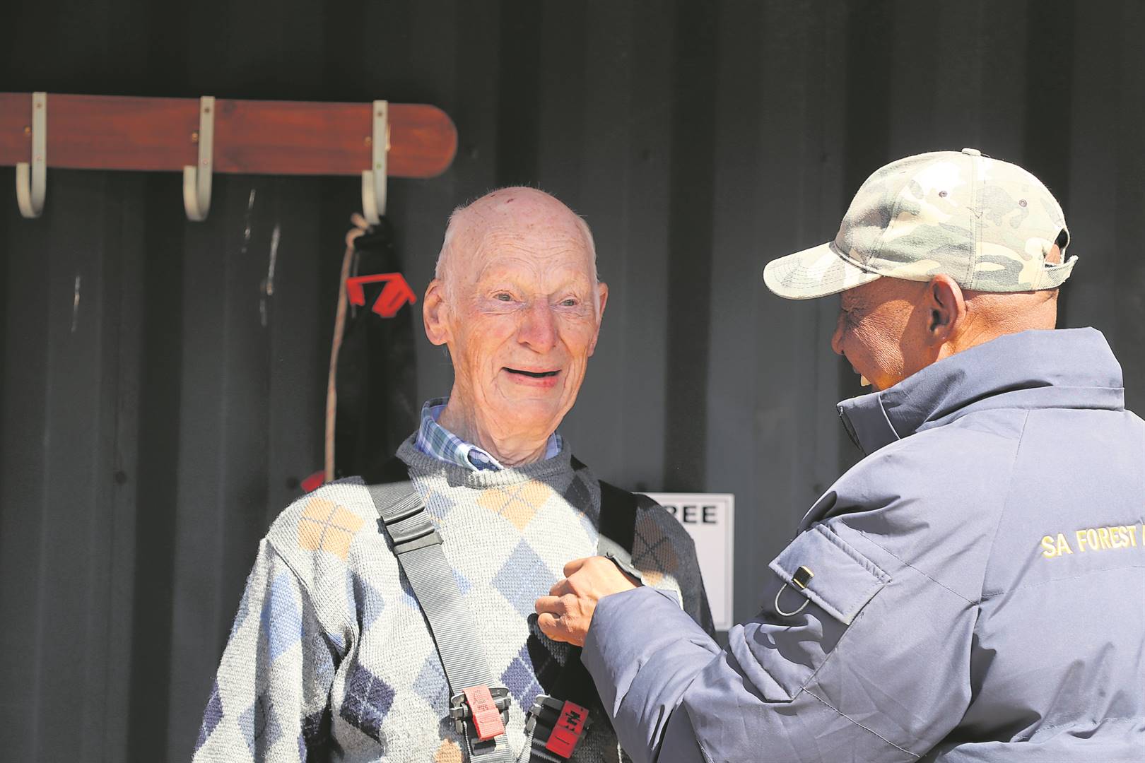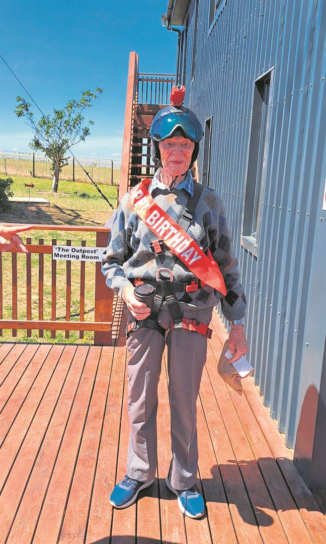 Dié pensioentrekker van Gordonsbaai het sy 91ste verjaardag gevier deur die wêreld se langste sweefspoor aan te durf en die uitdaging baas te raak.