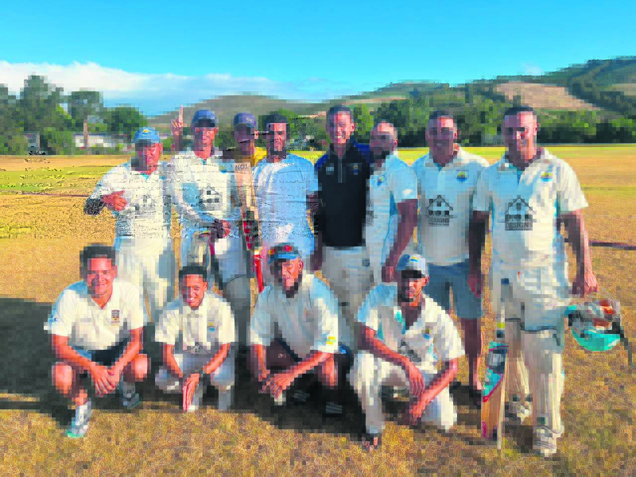 The victorious second team of Strand CC celebrating their memorable five-wicket win over neighbours Somerset West CC.
