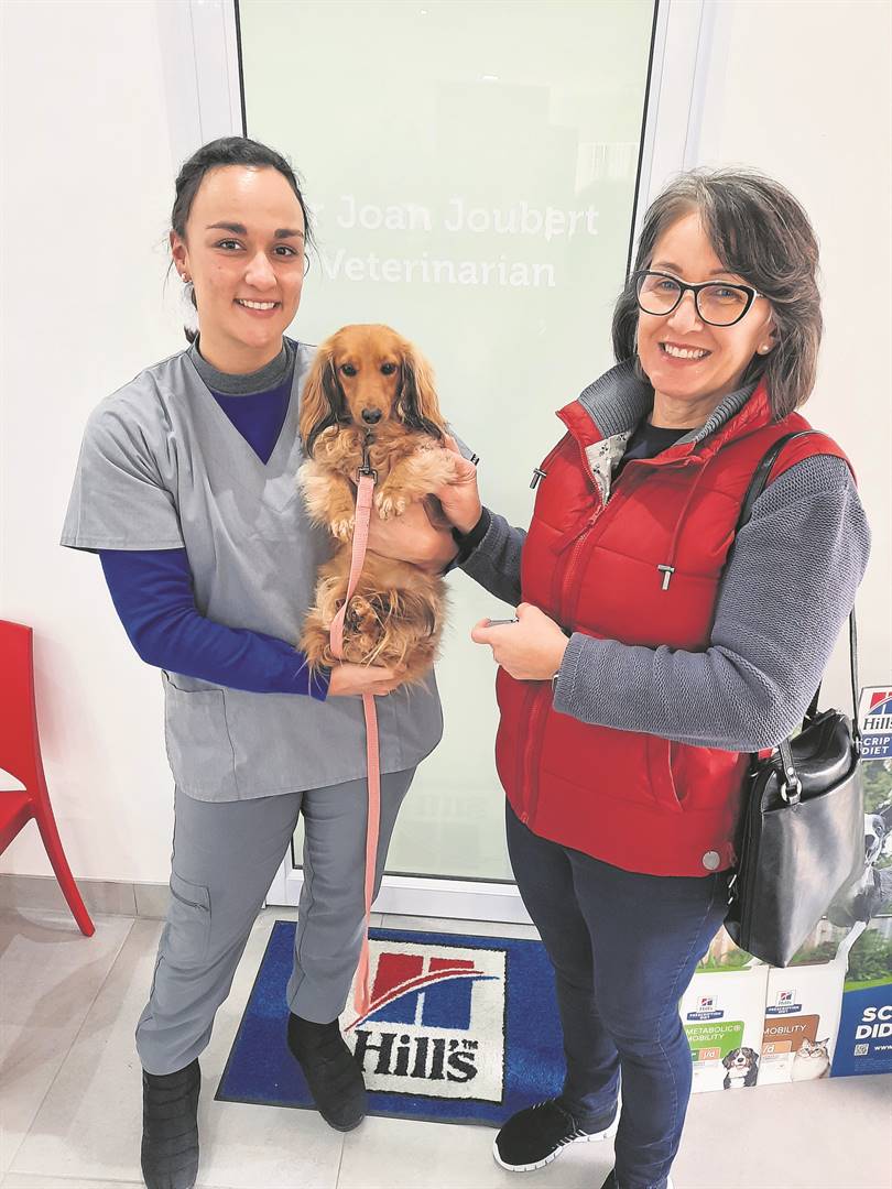 Gordon Road Veterinary Clinic veterinarian, Dr Joan Joubert with Lizette Joubert and furry friend Faith.