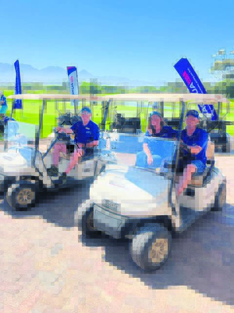 Japie Olivier, Helen Lee and Wayne Wells all revved up for the golfing action!