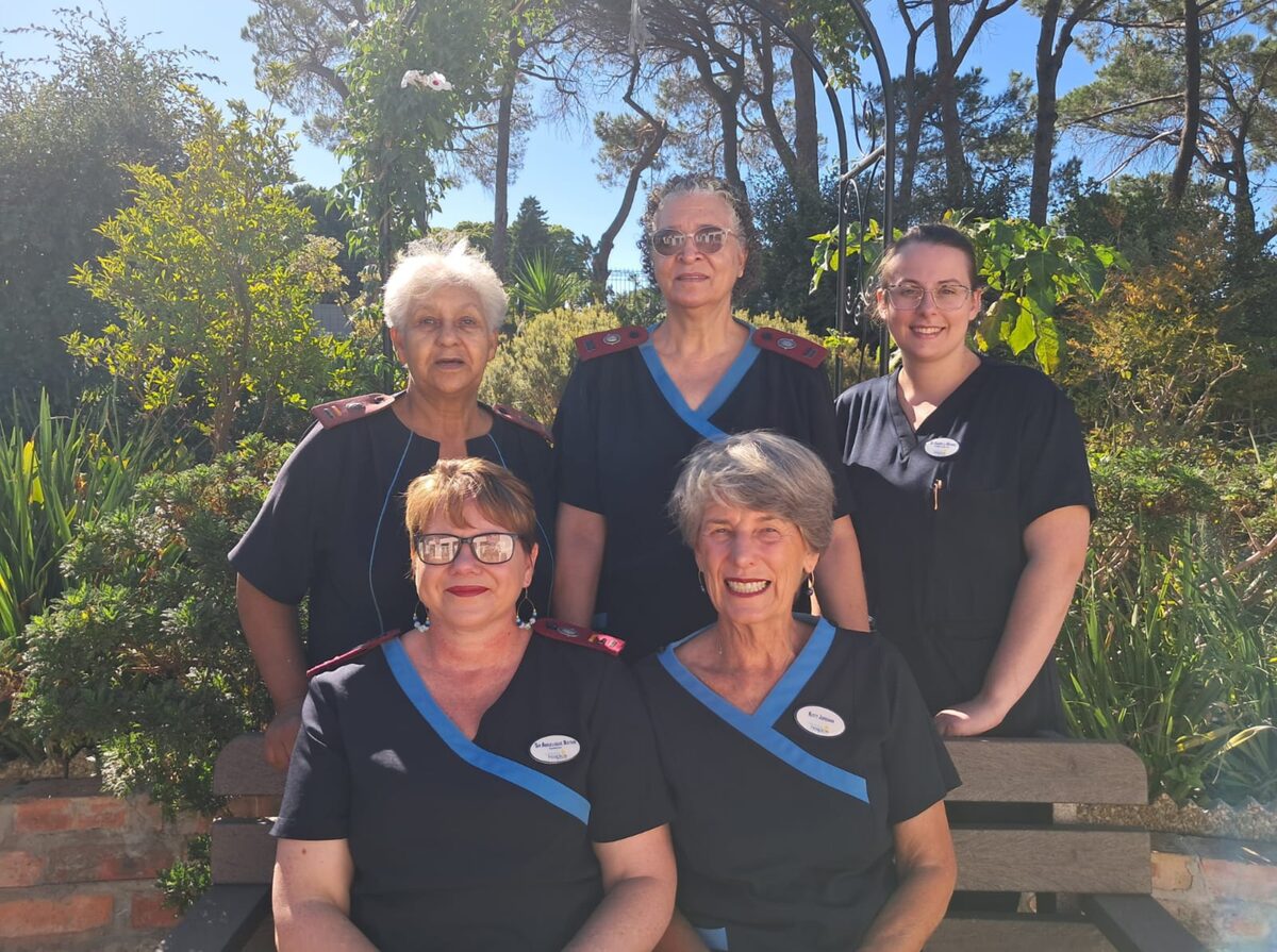The home-care sisters (behind, from left) sisters Alice Belchem, Julia Stuurman and Gabi Weichelt. Seated: Angelique Botha and Kitty Jordaan.