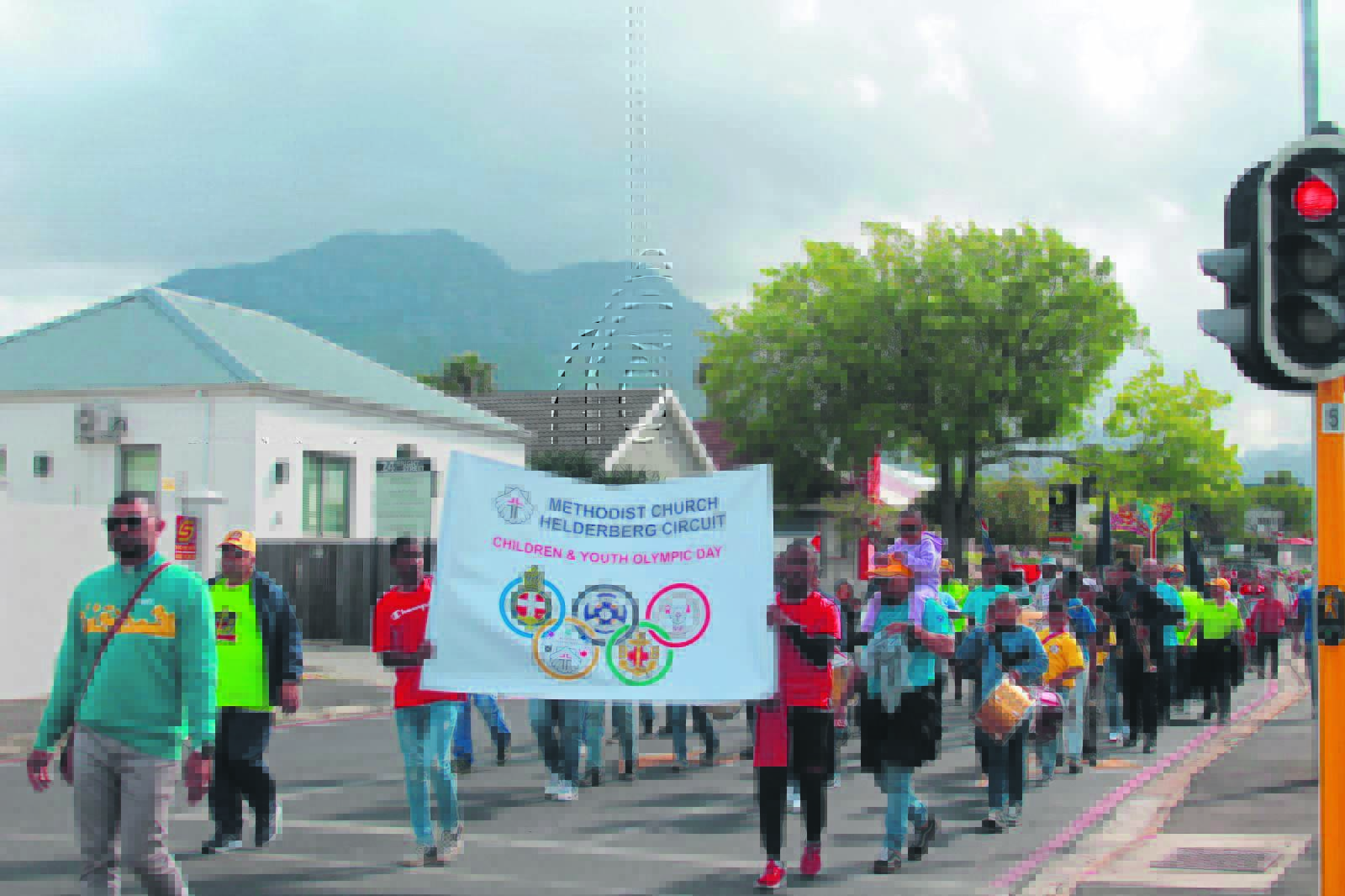 Die Metodiste-kerke van die Helderberg-kom se kinders en jeug het ’n saamtrek gehou waar jongmense gevier is. Die dag, wat oorspronklik op 16 Junie vroeër vanjaar moes plaasvind, is weens slegte weer in di?0 wintermaand tot voorverlede Saterdag (28 Oktober) uitgestel. Die geleentheid is afgeskop met ’n staptog van die Metodiste-kerk in Coronation-laan tot by Somerset-Wes Primêre Skool, waar sport insluitend toutrek, raakrugby en verskeie boeresporte aan die order van die dag was. Coulette Kennel, die koördineerder van die Metodiste-kerk se jeugsaamtrek, sê die Wes-Kaapse bataljon – beter bekend as die seunsbrigade – het die musiek op die dag verskaf. “Ons het in goeie samesyn alles gedoen. Ons het die oggend mooi begin en die middag mooi afgesluit,” sê Kennel. Foto: Chantel Hendricks