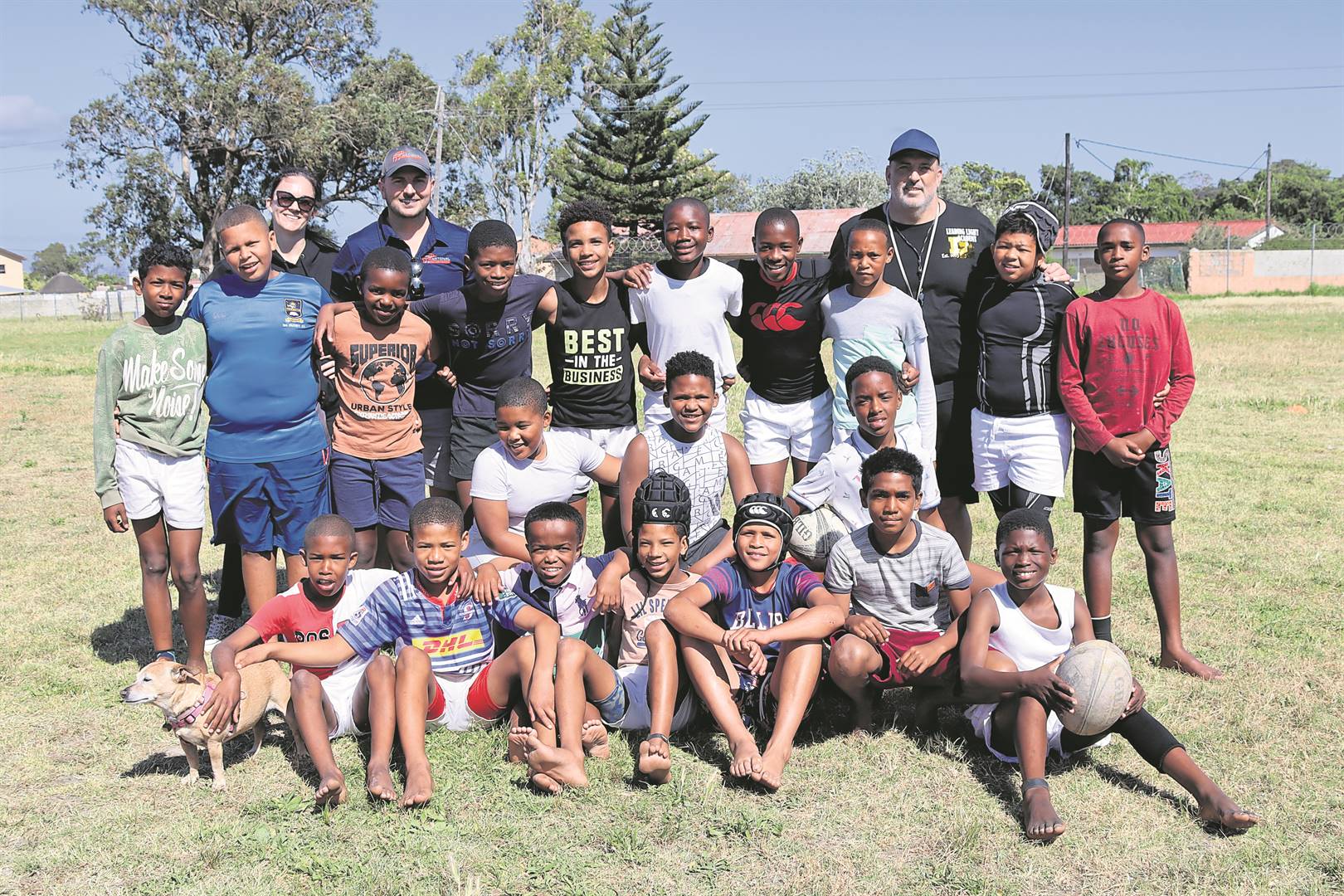 The under-11 team pictured with the school’s sports coordinator Leclue Visser (back, left) and Leading Light Academy coach and life skills facilitator Neil Daniels (back, right).