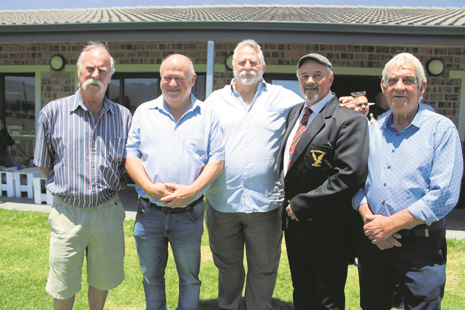 Blad Munnik, Theo Claassen, Hanki Heyns, Bokkie Carstens en Blackie Swart van Helderberg-rugbyklub het hul laaste eer aan die rugbylegende Jan F. le Roux betoon.