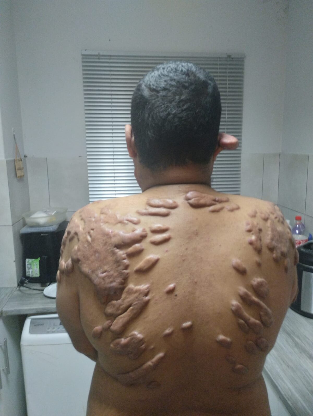 As is common with the disorder, Keanou has unsightly red-tinted growths on his chest, shoulders and arms, cheeks and earlobes, the latter affecting his hearing. He avoids public appearances and battles severe itching and irritation all over his body, along with constant shooting pains through the keloids. The disorder has also derailed his tertiary studies. Keanou, who was pursuing a BComm Accounting degree, had to drop out in his second year due to the overwhelming burden of the condition. However, he is now hopeful for some respite now that life-altering treatment is within reach and he is scheduled to undergo an operation this week.