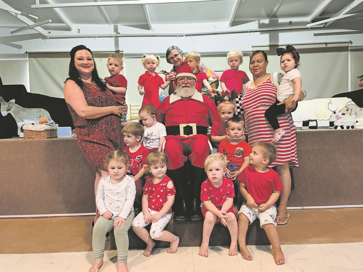 Die kleingoed van Ruimte-sentrum se Pikkewouters-kleuterskool in Strand was aangenaam verras toe Kersvader die afgelope Dinsdagoggend (13 Desember) by hulle kom inloer het. Elkeen het hul beste voetjie voorgesit, want niemand wil steenkool in sy of haar Kerskous hê nie. Hier is van die kleuters wat die geleentheid aangegryp het om op Kersvader se skoot te sit en hul Kerswense met hom te deel.
