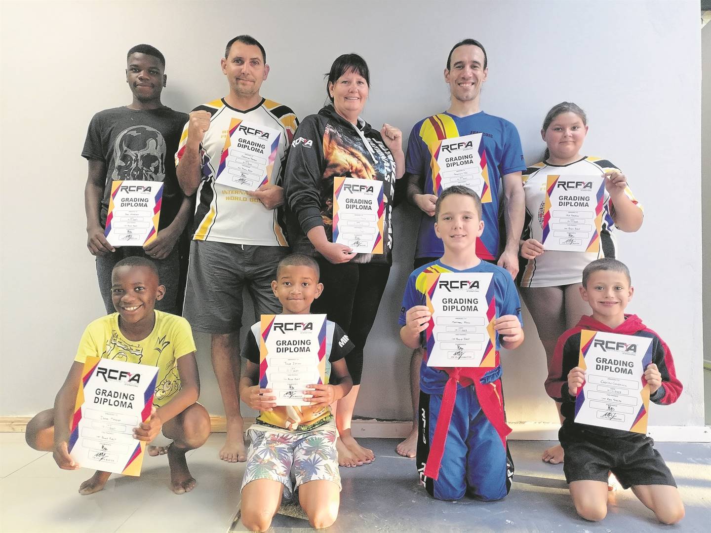 The False Bay Ring Contact Fighting Arts Club in Gordon’s Bay recently held its second grading of the year. Pictured in front are Isaac Maseka (first blue belt), Tyler Istain (first blue belt), Matthew King (first blue belt) and Cadrian Combrinck (first red stripe graded). Behind: Dan Maseka (first blue belt), Christian Theron (second yellow belt), Chantelle Meyer (first blue belt), Francois Nel (second blue belt) and Mia Theron (second blue belt). Classes at the club start again on Monday 15 January. There will be classes in Gordon’s Bay from 17:00 to 18:00 and in Strand from 19:00 to 20:00. For more details call Shihan Gert Kotzee on 071 563 7341.