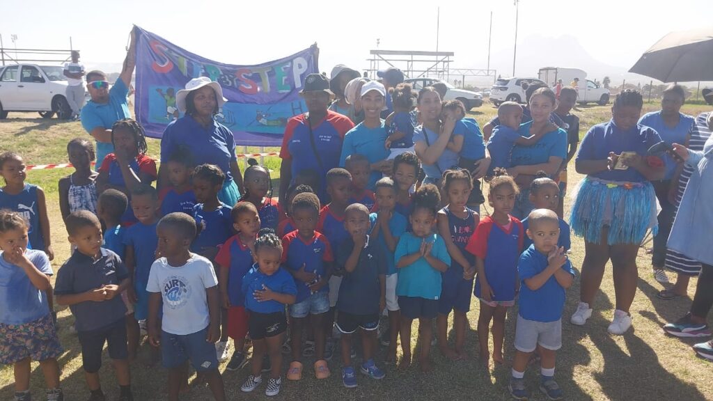 ‘n Sportdag vir plaaslike Macassar kleuterskole was aangebied verlede maand, Saterdag 8 Maart, by die Nuwe Macassar-sportveld. Vyf skole het deel geneem, hulle is Paradise Kids Educare, Living Stones Educare, Siphosenkosi crรจche, Step by Step en Jellyย Beansย Daycare. Die klein atlete het hul vaardighede getoets in hardloop, bromponie-wedrenne, eier op die lepel-wedren, spring, stapel en whoolaย whoops. Kleuterskoolhoofde, onderwysers as ook die kinders se ouers het deelgeneem in die aktiwiteite. Almal was wenners op die dag want hulle het nuwe vriende gemaak en pret gehad. (Foto) Paradise Kids Educare se skoolhoof Ciscar Alexander en onderwysers, Ashuraa Wyngaard en Johanna Manuel met hul atlete.