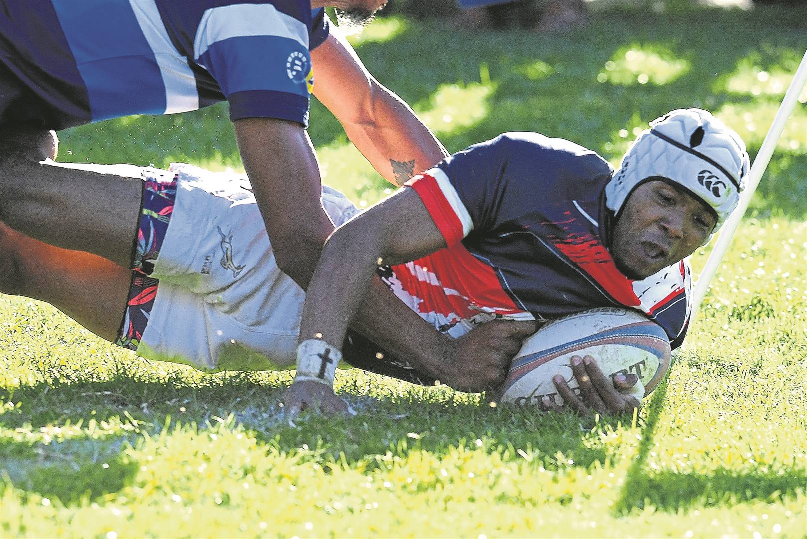 Tervin Britz goes over the line to score for Sir Lowrians.