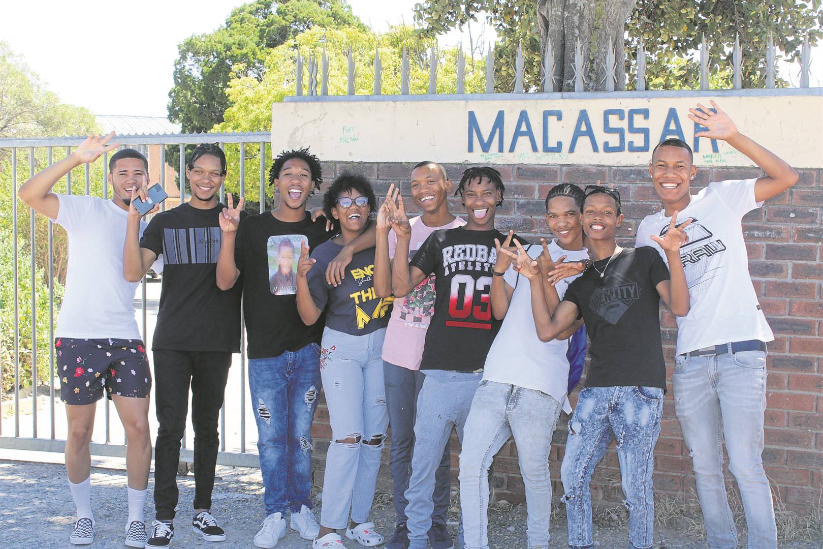 This nervy, but excited group were first to rock up at Macassar High School for the matric results.Photo: Jamey Gordon
