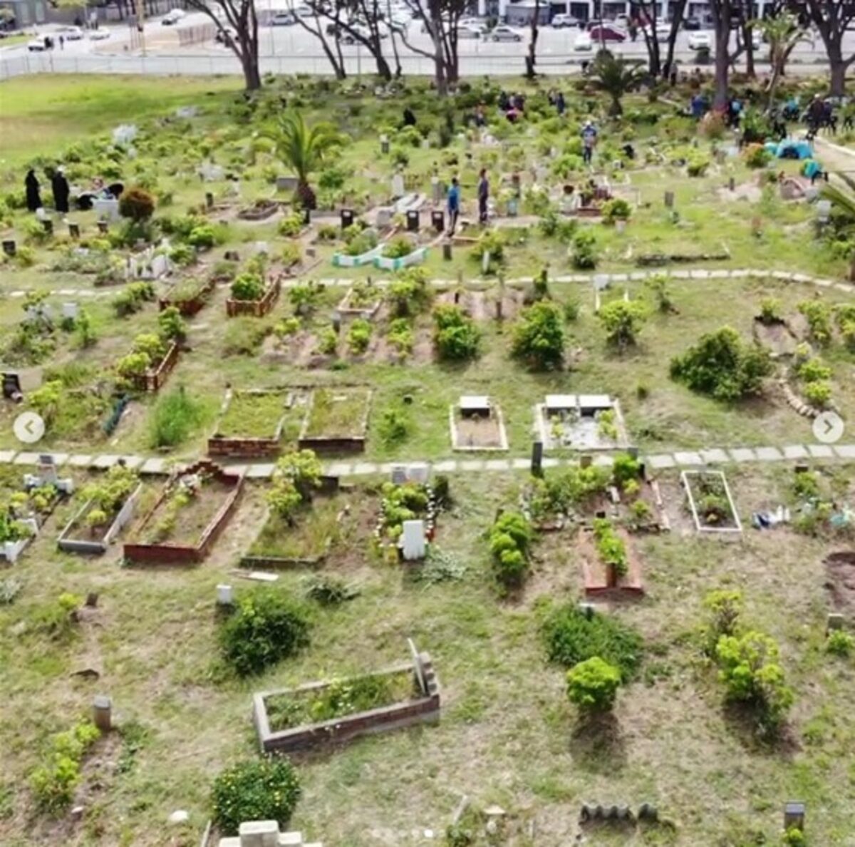 An aerial view of the Strand Maqbara (Cemetery).