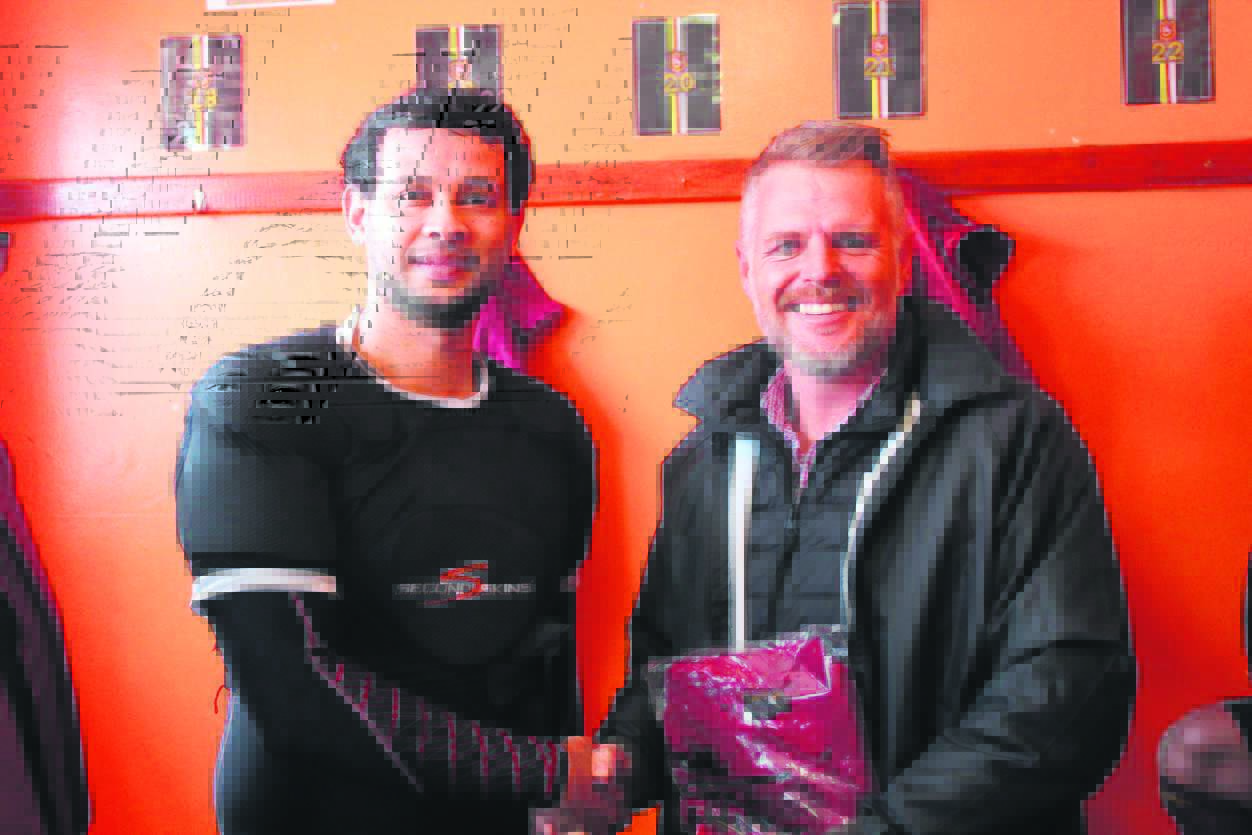 As a token of appreciation for the kit sponsorship, St George’s first team captain Fabian Filander handed a club T-shirt over to Andrew Bishop of the GET Metal Group before the team’s Super League B match against Collegians RFC at Gustrouw Sports Ground on Saturday 30 July.