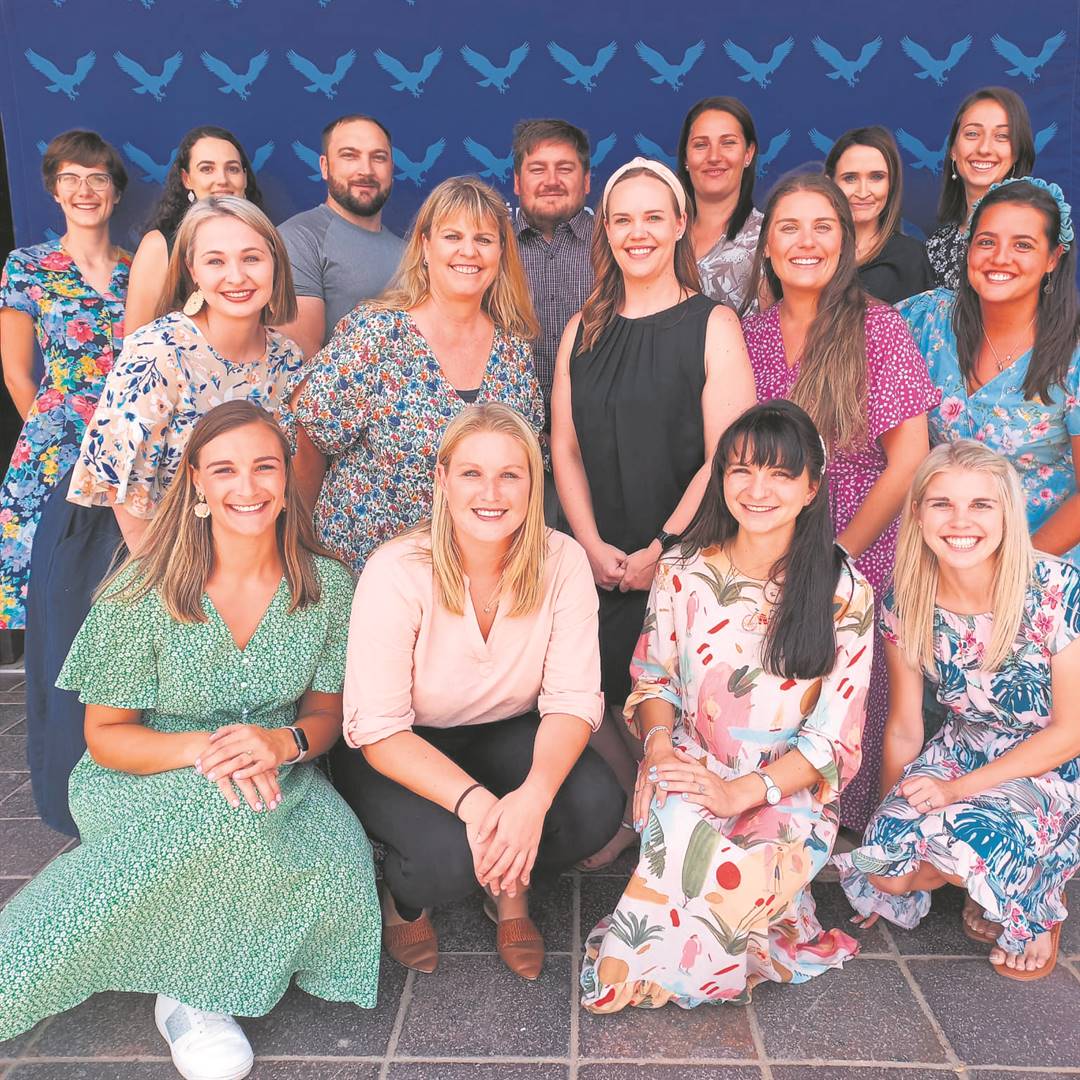 Die Hoërskool Strand het verlede week dié span nuwe personeellede in die Arend-familie verwelkom. Agter (van links) staan Jana Lombard, Carien Papenfus, Shaun Prins, Marcus Pretorius, Marsha Pretorius, Mellisa Burger en Elzandra Claassen. Middel: Marizahn de Beer, Tertia Swart, Louise Adendorff, Bianca de Koker en Jacqueline Vermaak. Voor: Tilana Siebrits, Marizelle Verwey, Janke van Schalkwyk en Ané Venter.
