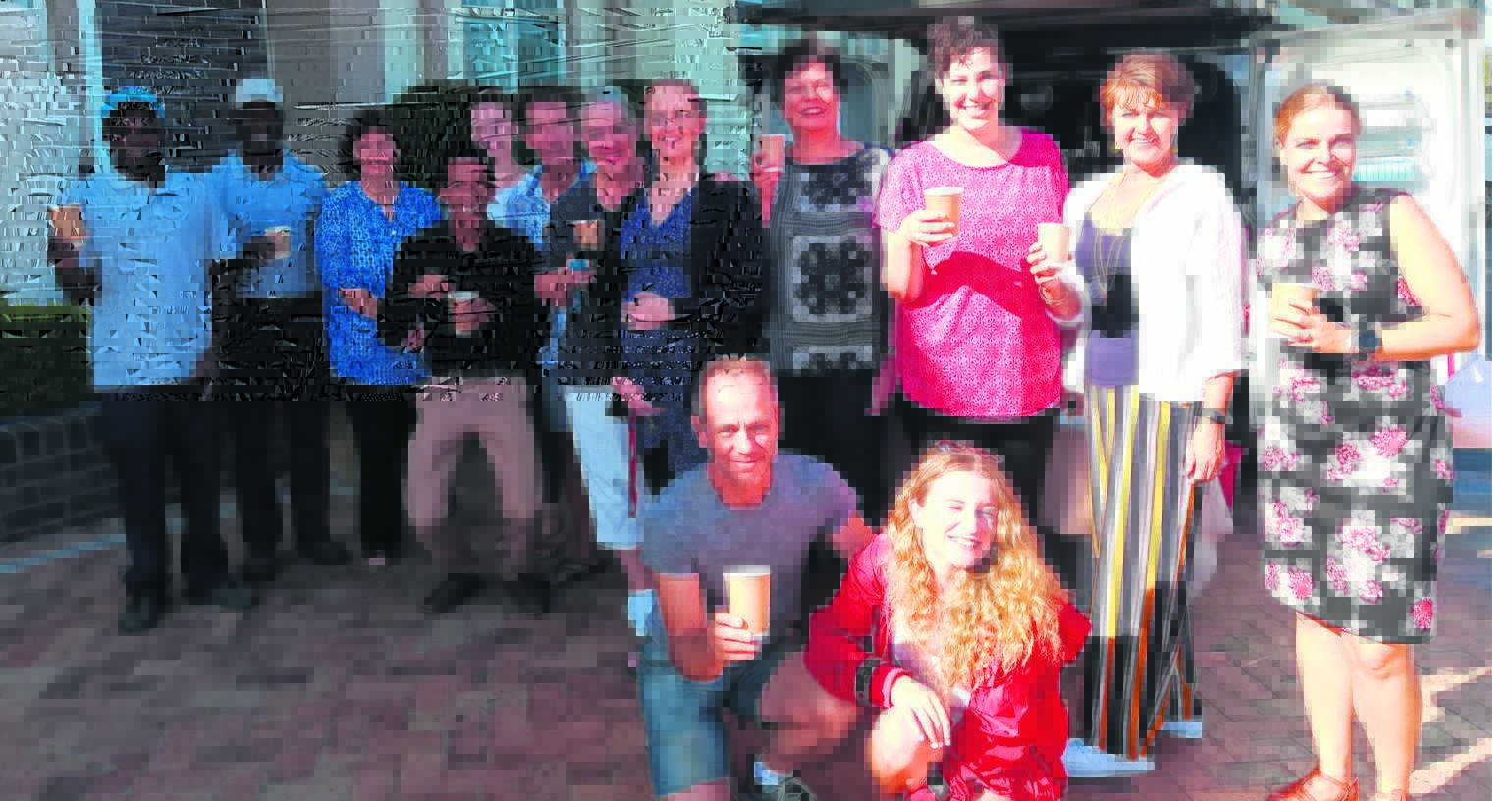STRAND – Die personeel van die Hoërskool Strand bedank Robbie Schmidt (voor, links) van Six Weeks Mobile Barista wat Woensdag 18 Maart hulle met sy heerlike koffie kom bederf het.