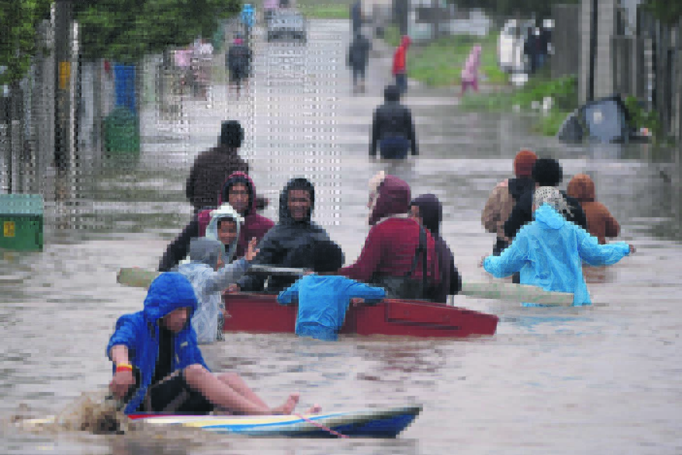Strate oor die Strand heen het in riviere verander, en sommige inwoners het bote gebruik om te ontsnap.Foto: Don Marx