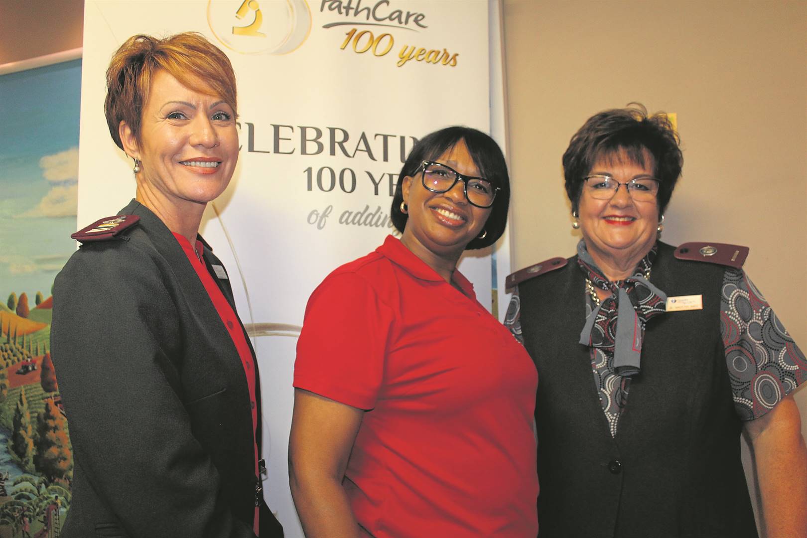 Pathcare staffers Nicolette van Rooyen (zone manager), Tilla Shaakumeni and Sr Madeleen Smit.