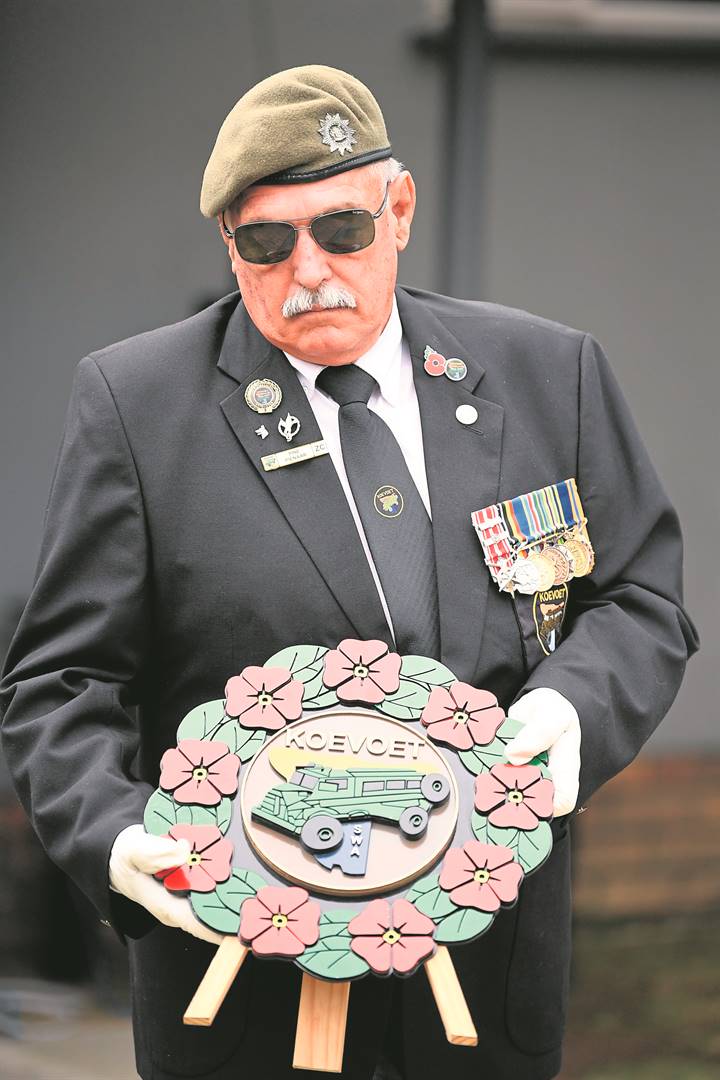 Pine Pienaar lays a wreath on behalf of Koevoet Veterans League.