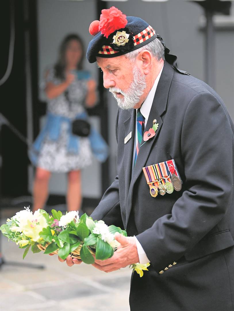 Peter Erasmus lays a wreath on behalf of Transvaal Scottish regimental Association.