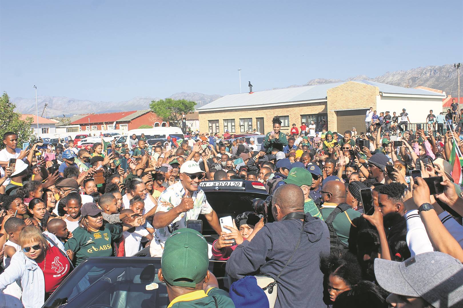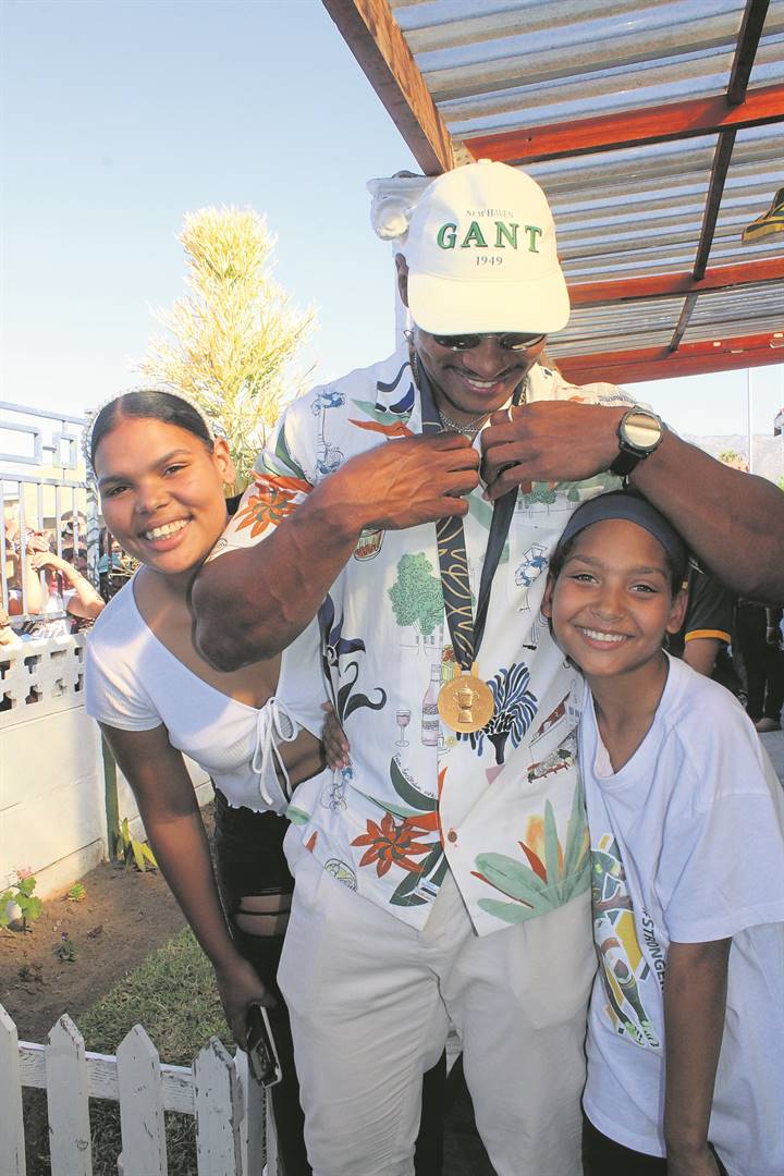 A sea of adoring fans, mostly children and youngsters, go wild at the sight of Helderberg local and Springbok World Cup winner Damian Willemse, who visited his childhood home in Hassan Khan Avenue, Gustrouw, Strand, last Wednesday (8 November). View the photo gallery of the double World Cup winner’s return to his hometown on the DistrictMail & Helderberg Gazette landing page on News24 and Netwerk 24. The link will be shared on the publication’s Facebook page.Photo: Jamey Gordon
