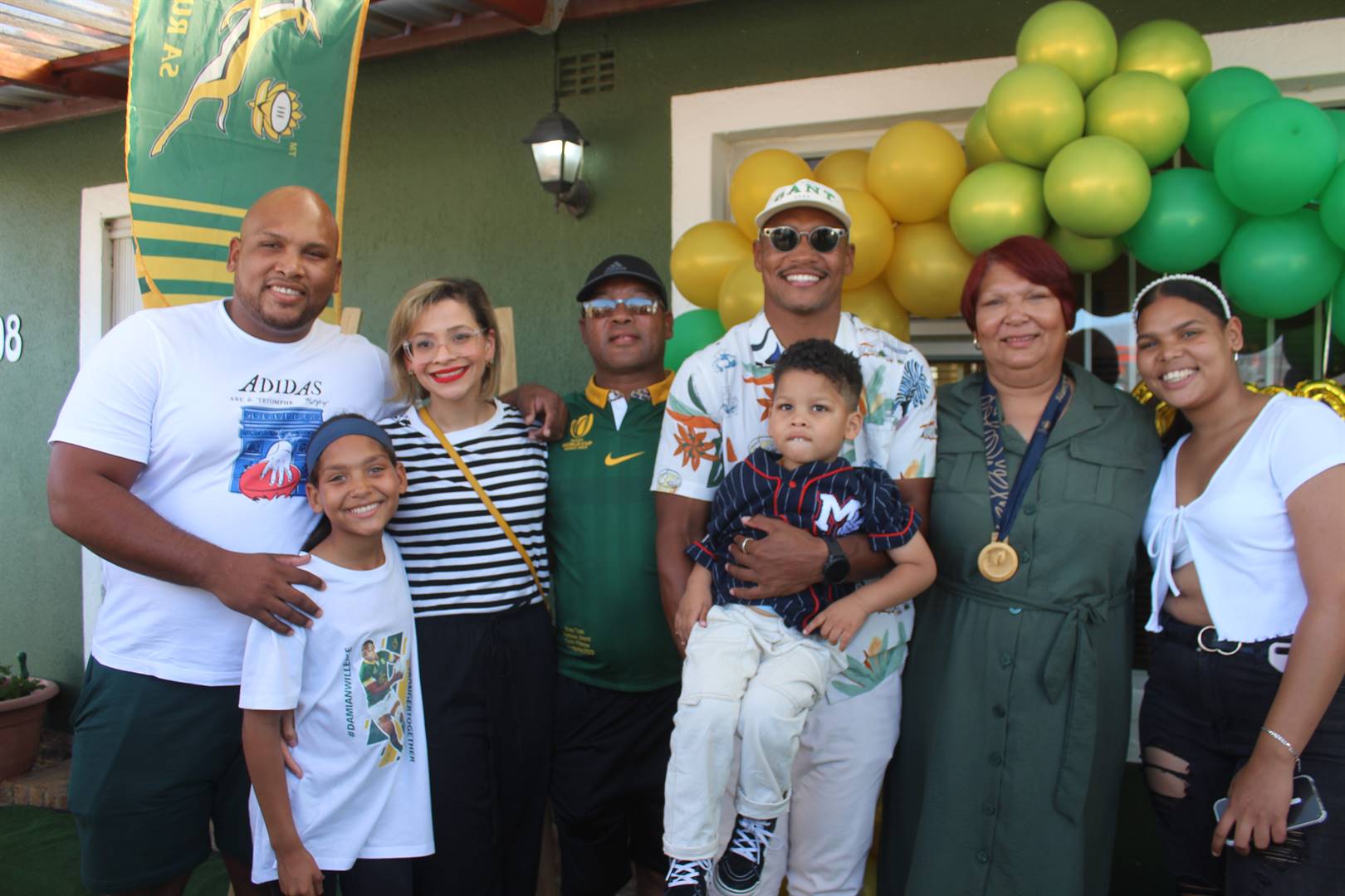 Damian and his family reunited! Pictured (in the back) are Ramone and Michelle Samuels, Francois, Damian, Charlotte and Farren Willemse; (front) Kristy-Grace Willemse and Ramone jnr Samuels.