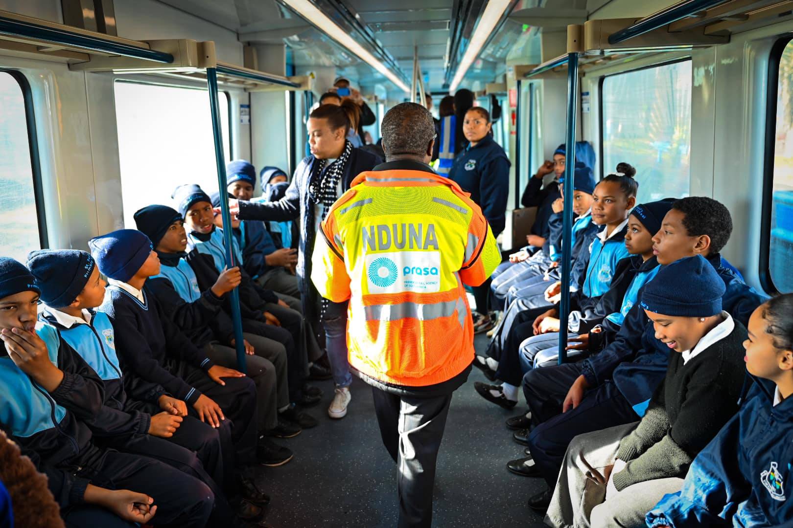 St Paul’s Primary School learners were eager commuters onboard the train from Faure to Van Der Stel Railway Station.