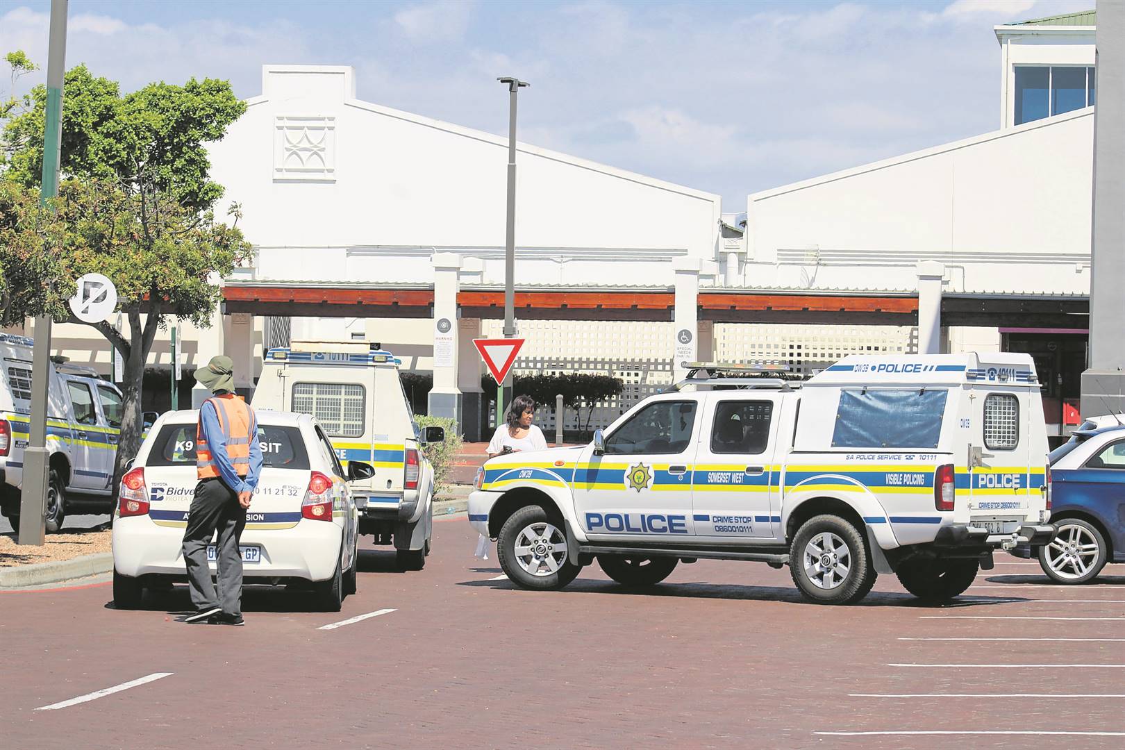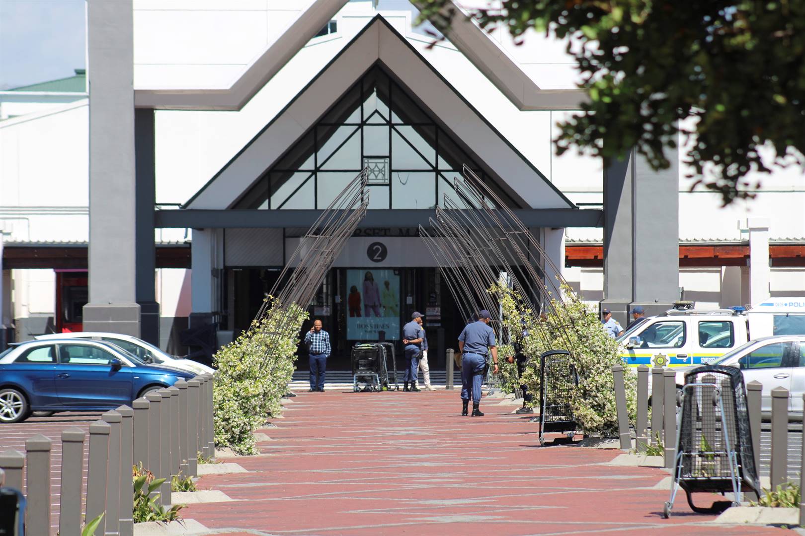 The parking area of the mall was sealed off as members of the public watched the drama from a distance.