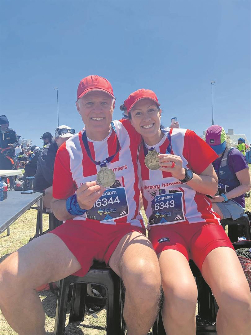 The Helderberg Harriers Athletics Club proudly celebrates the participation of numerous members in the Cape Town Marathon, achieving an impressive array of results. Pictured here with their finisher medals are Johann Coetzer, Ine van Heerden, Francois Grobler, Annelene van der Merwe, Johannes Nel, Lindy Croucamp, and Riaan van Heerden..