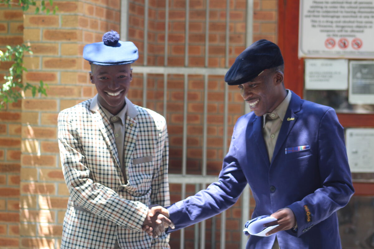 Celebrating in true style! Zandvliet High School graduates Siphumeze Mdingana and Iviwe Mbema couldn’t look prouder as they commemorate their matric success, dressed to the nines for the milestone moment. Photo: Jamey Gordon