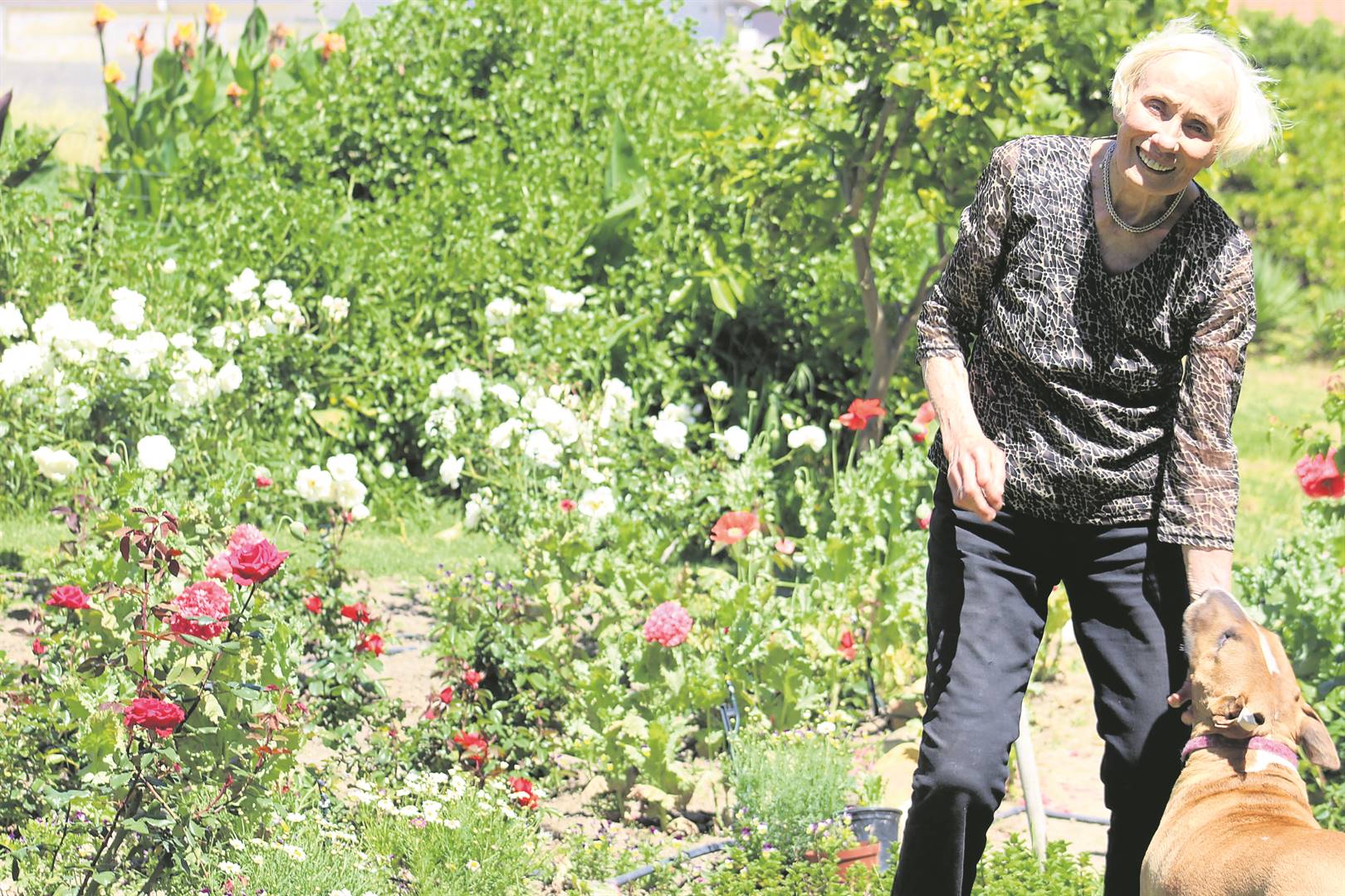 Rene Teichmann’s garden in Parel Vallei flourishes in green splendour, showcasing a vibrant and fragrant array of roses. Among the varieties are the blushing Simplicity Icebergs, elegant Just Joeys, stately Harry Oppenheimers, beautiful Red ’n Fragrant, and stunning Snow Queens, all meticulously planted and nurtured by her daughter, Olga Tosi. Joining the mother-daughter duo in the garden is gardener Donald Kamanga, who tends to the garden three days a week.