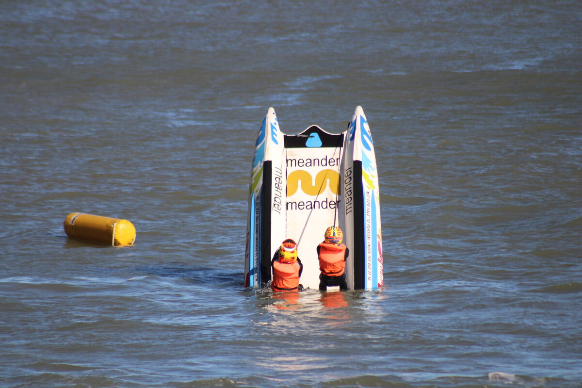 However, the powerful duo of Rico Meyer and Wynand de Wet (M32) faced an unfortunate setback. While having a great run, a barrel roll in the strong south-easterly wind sidelined their efforts, with Wynand sustaining a foot injury.