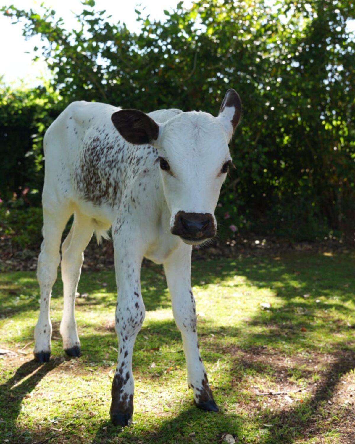 The unnamed calf joins another young Nguni, Henry, who is mostly white and something of an estate celebrity. Bottle-fed and tame, he has formed a close bond with hospitality manager Sue Steenkamp and enjoys spending time in her garden.