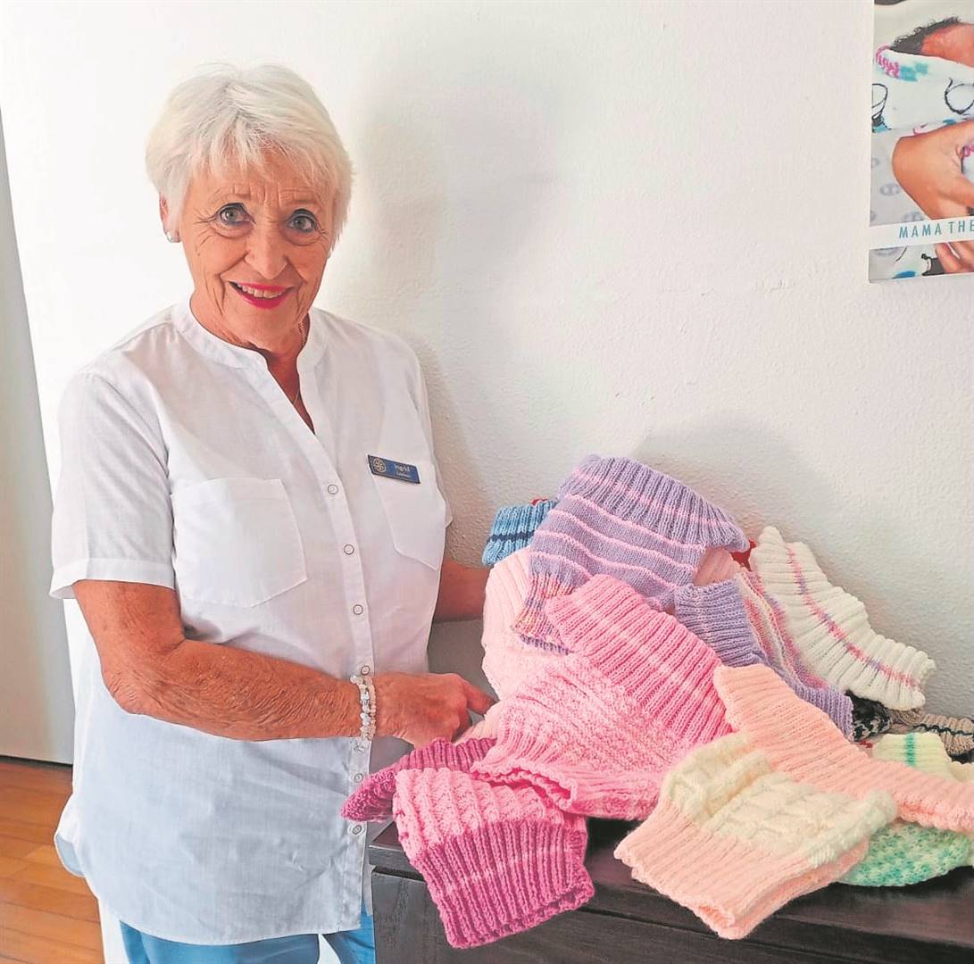 Helderberg Rotary Ann Ingrid Edelson with a few of the 37 jerseys that were all lovingly knitted by Nellie Swart, one of many keen knitters who keep their needles clicking for a good cause on the Anns’ behalf. With the aim of spreading some winter warmth the group recently donated these winter woollens to the community organisation Mama Themba. If anyone has wool to spare contact Edelson on 082 459 2146.