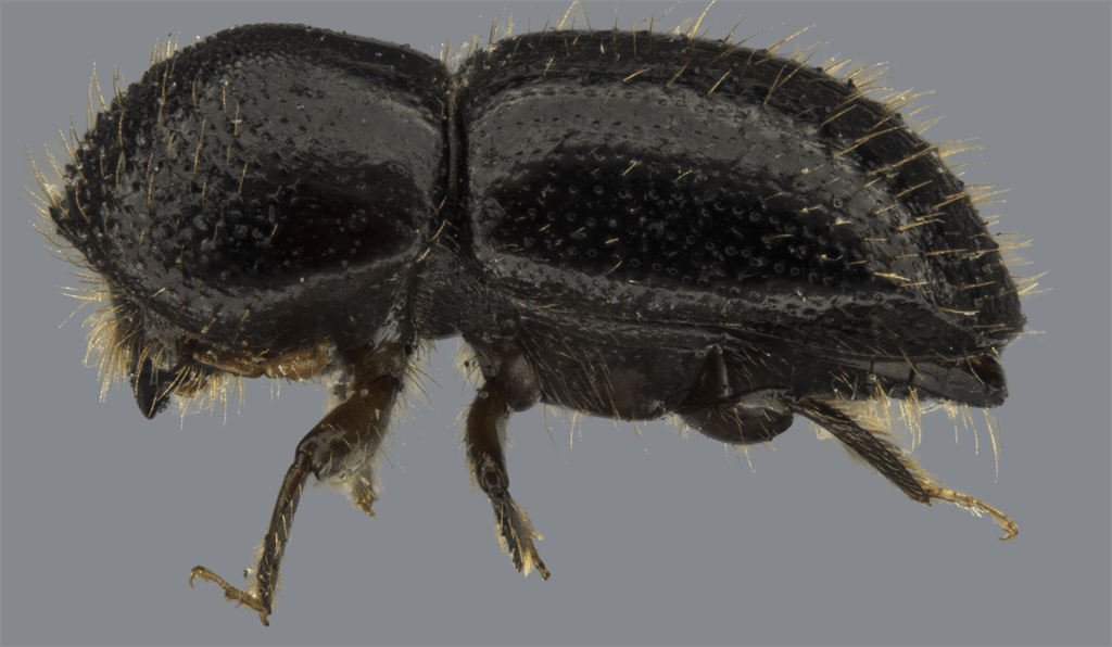 • The beetle is the size of a sesame seed and is approximately two millimetres in length. Its symbiont fungal partner are threatened trees across South Africa