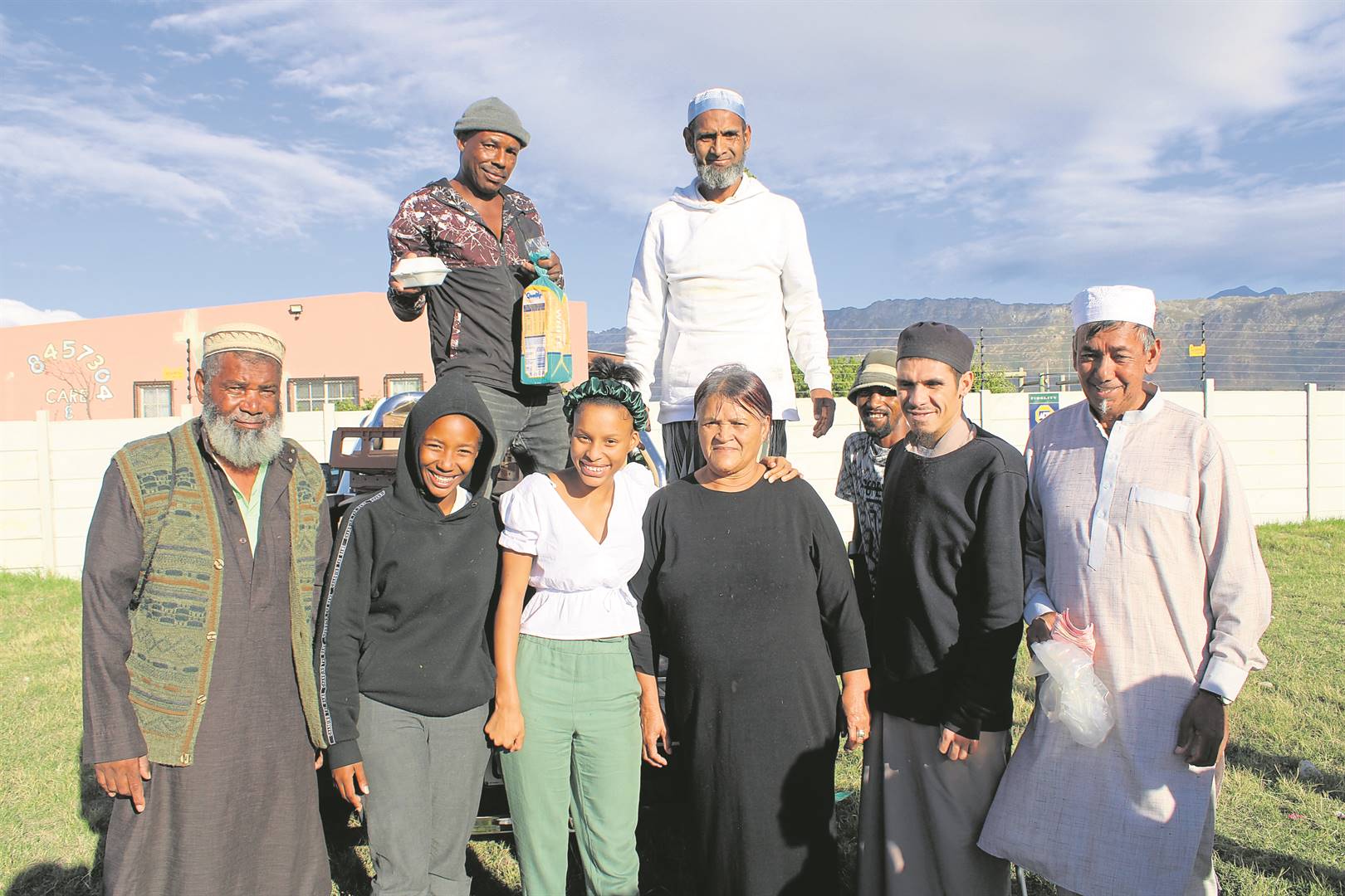 For the past five years, every Friday afternoon at least 1 000 meals have been handed out to the needy of Gustrouw. The tear-jerking sight, which benefits mostly women and children among others, is made possible thanks to the generous donations of the greater community who band together in ensuring meals are ready on time. Pictured are the volunteers of the project, Front (from left): Boeta Saeed Daniels, Ruanitha Fredericks, Chante Sauls, Setta Sauls, Ebrahim Brinkhuis and Hussein Japie (Strand Moslem Hands). Above: Joseph Shlaba and Rashaad Rajiet.Photo: Yaseen Gaffar