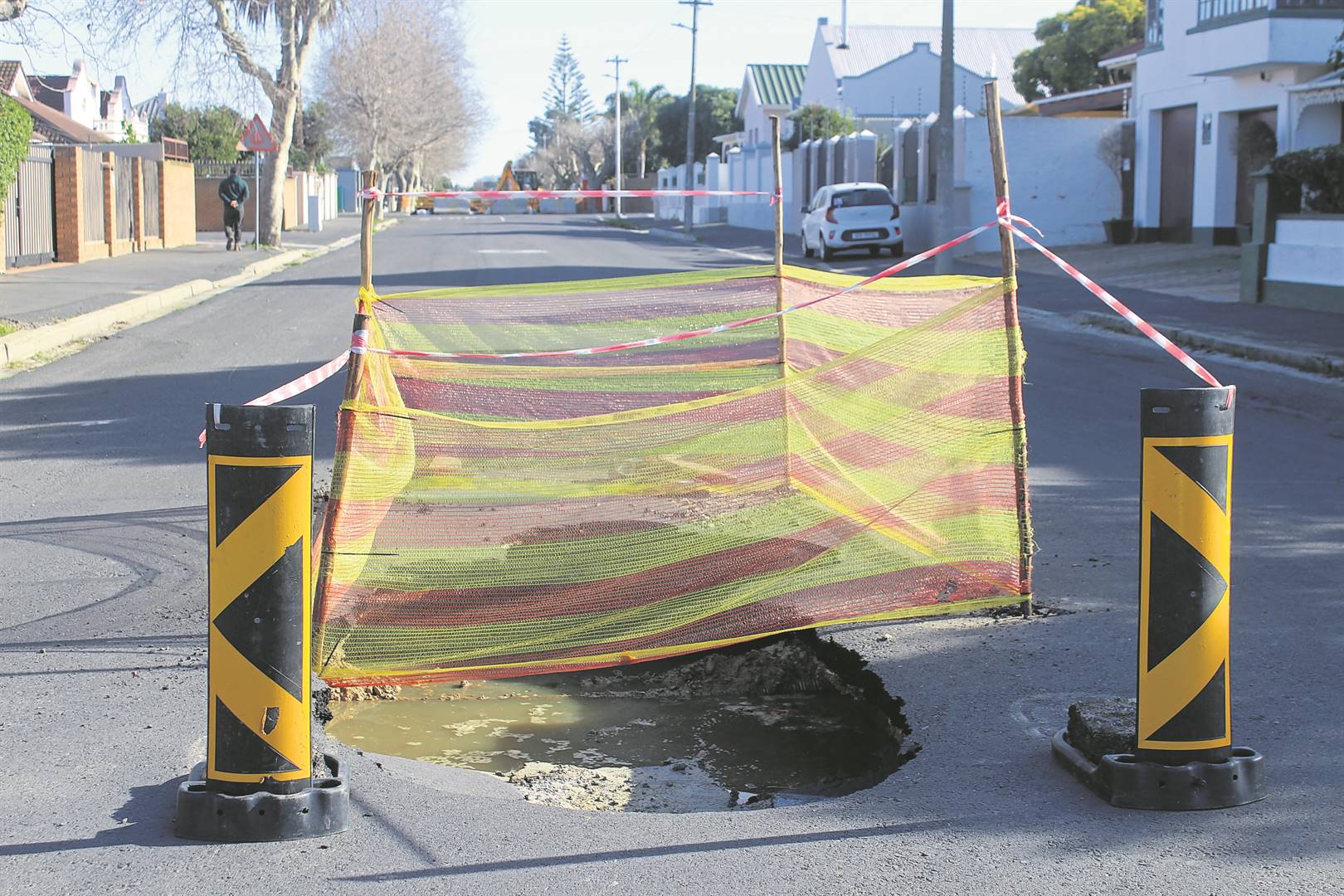 The latest sinkhole means there are three different sections of De Villiers Street currently cordoned off due to repairs and roadworks, which include intersections with Mills, Myburgh and Rabe Street.
