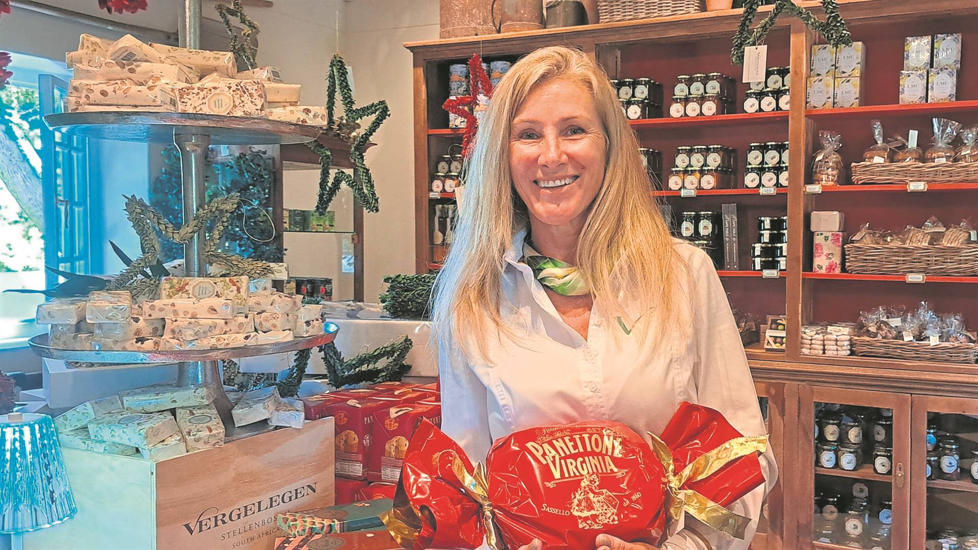 The stylish lifestyle outlet, named The Potting Shed Gift Shop, is located in a recently renovated Cape Dutch-style building. Featuring a traditional thatched roof, bespoke fittings and furniture in Vergelegen’s trademark sage green, and black-and-white floor tiles, it overlooks the estate’s glorious rose garden, with the scent of rose petals wafting in.