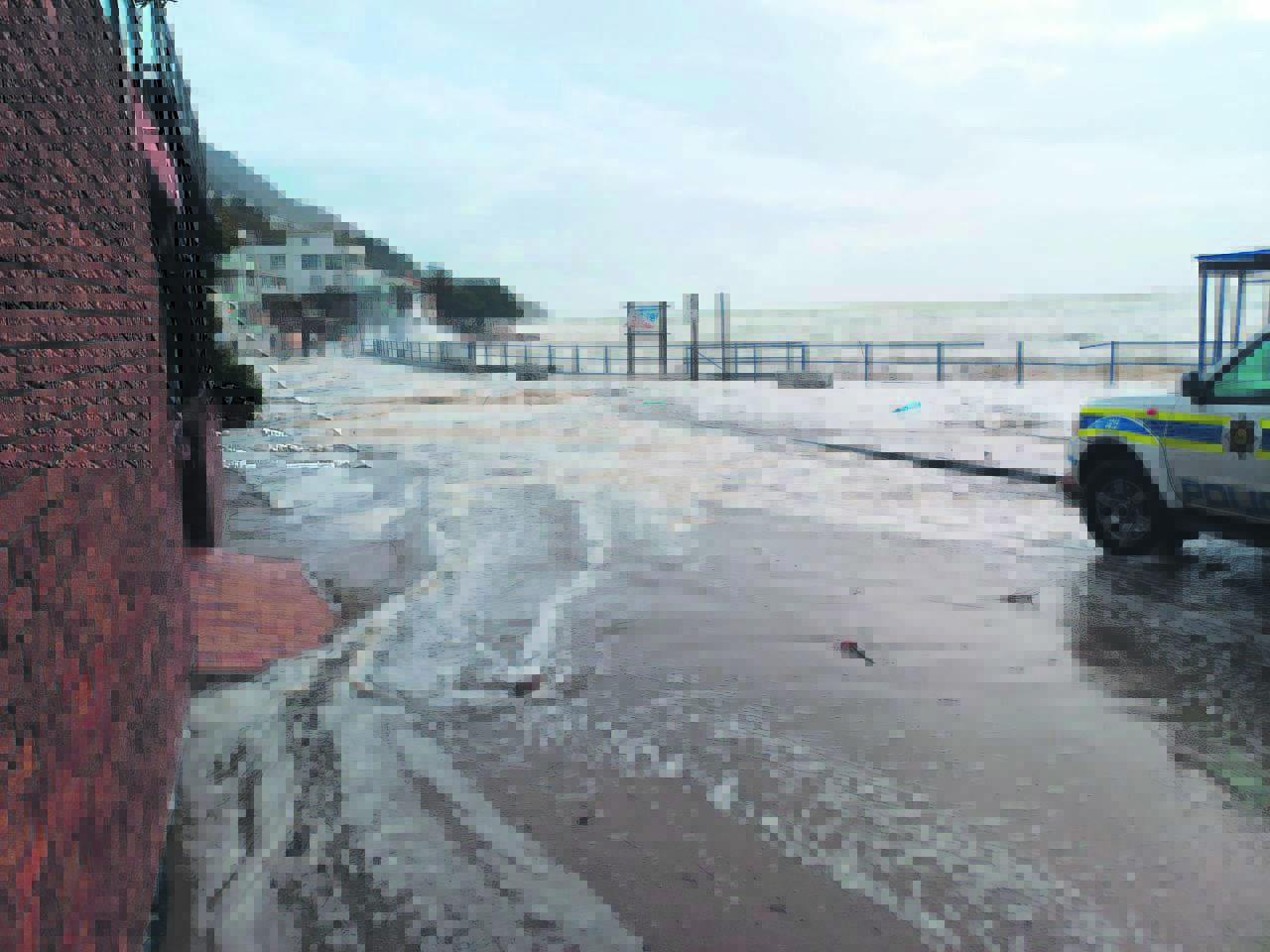 Seewater spoel oor Beach Road by Bikini-strand teen omstreeks 15:00 op 16 September.Foto: GB Sekuriteit