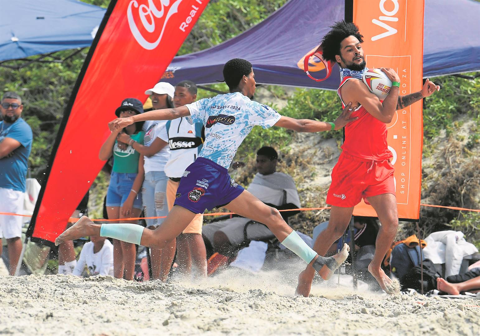 Junaid Phillips of Score Forward Legends outpaces his opponent in a match played as part of the at the Strand leg of the Hot Summer of Touch Series. Photo: Peter Bee