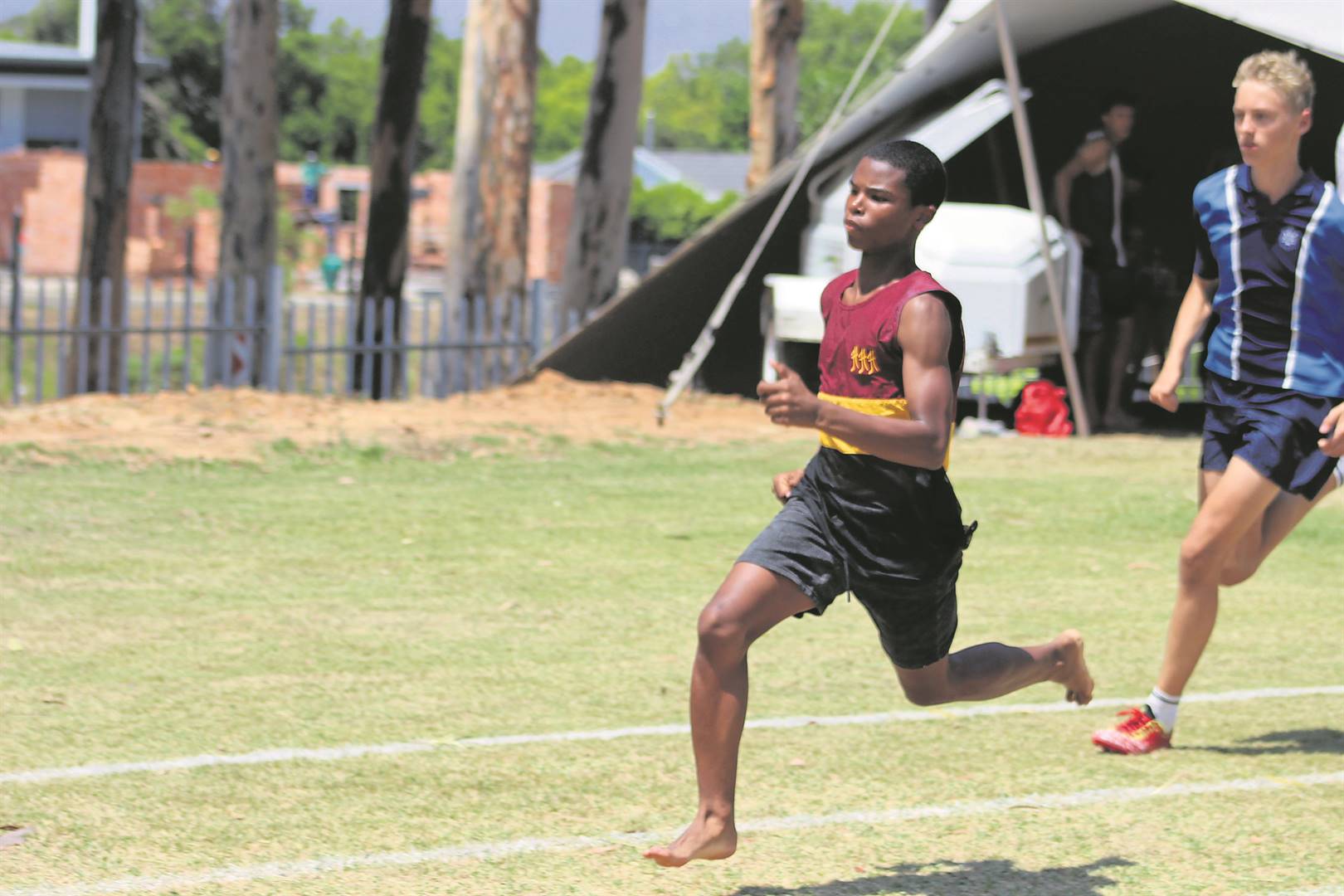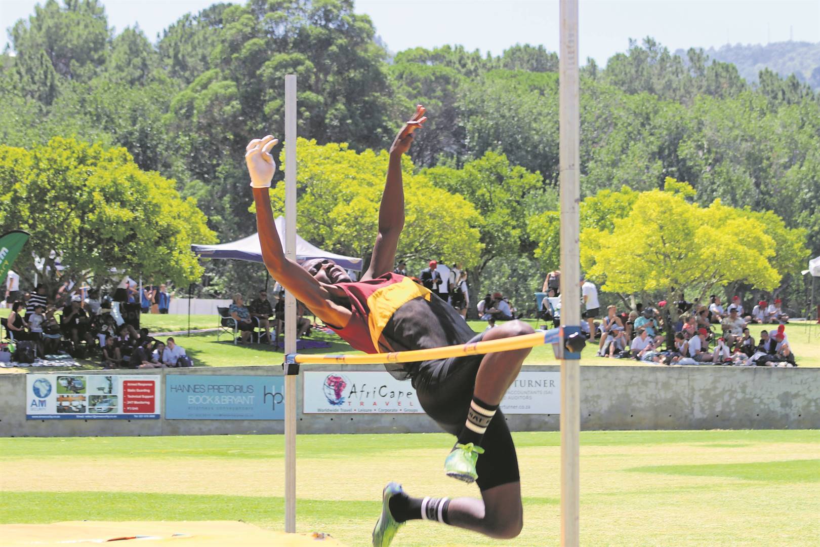 Under-17 boys’ high jumper Napo Lephallo put his back into the unaided leap over the horizontal bar.
