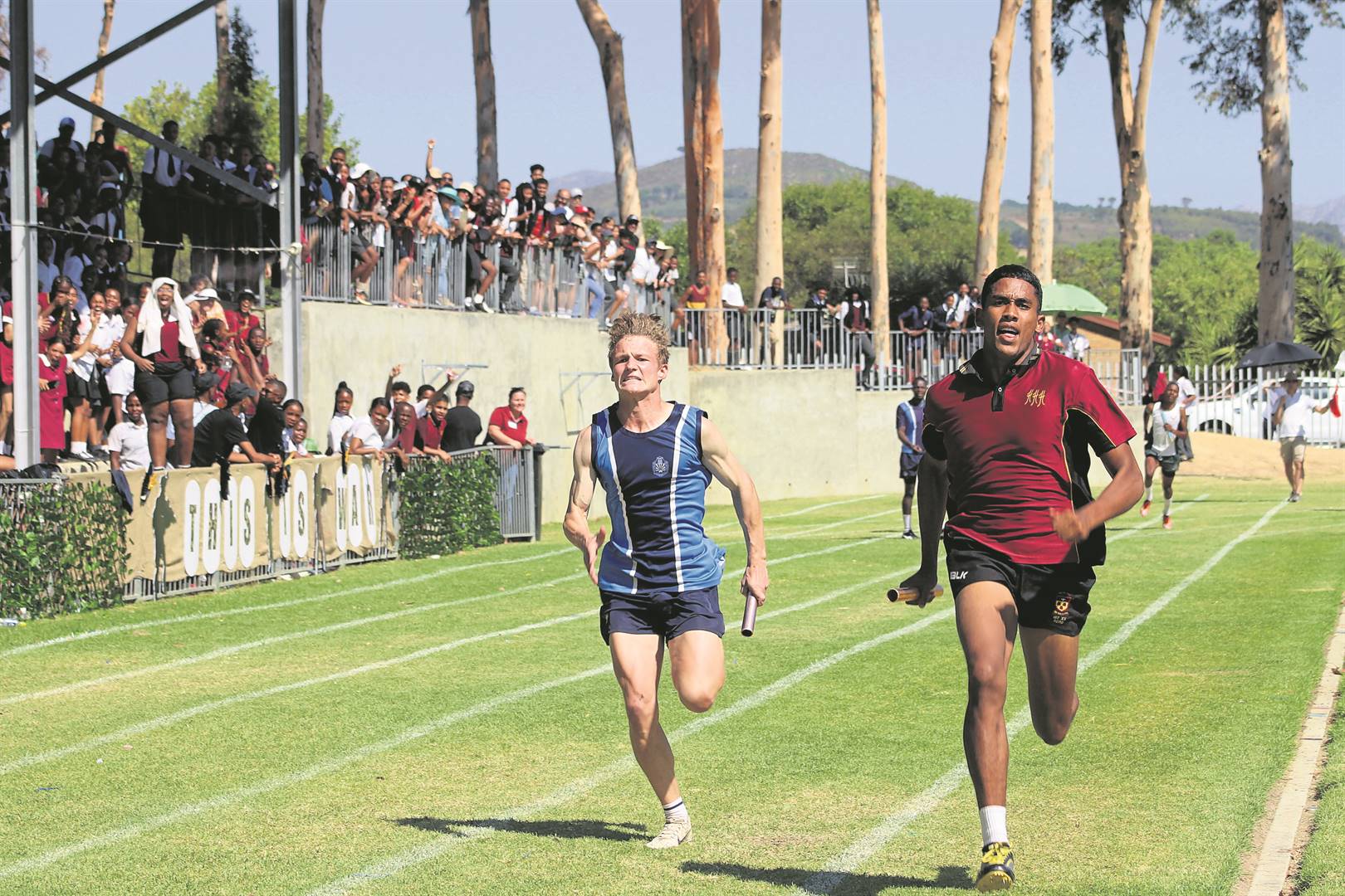 Wayden Adriaanse gives his Parel Vallei opponent a run for his money in the under-19 boys relay.