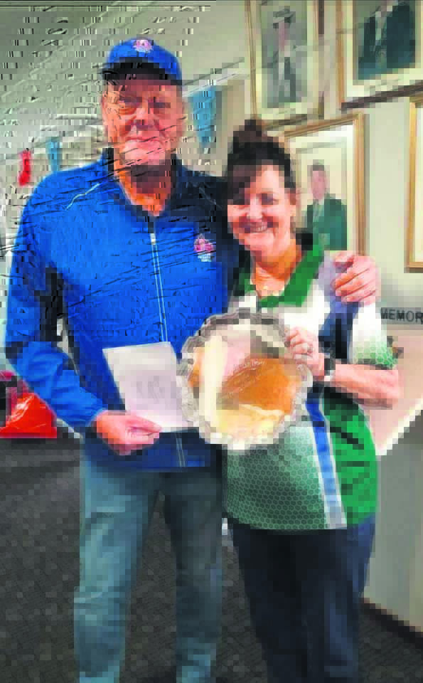 Susan Mckay-Vlok with Gerrit van Millegen, president of WP Bowls.
