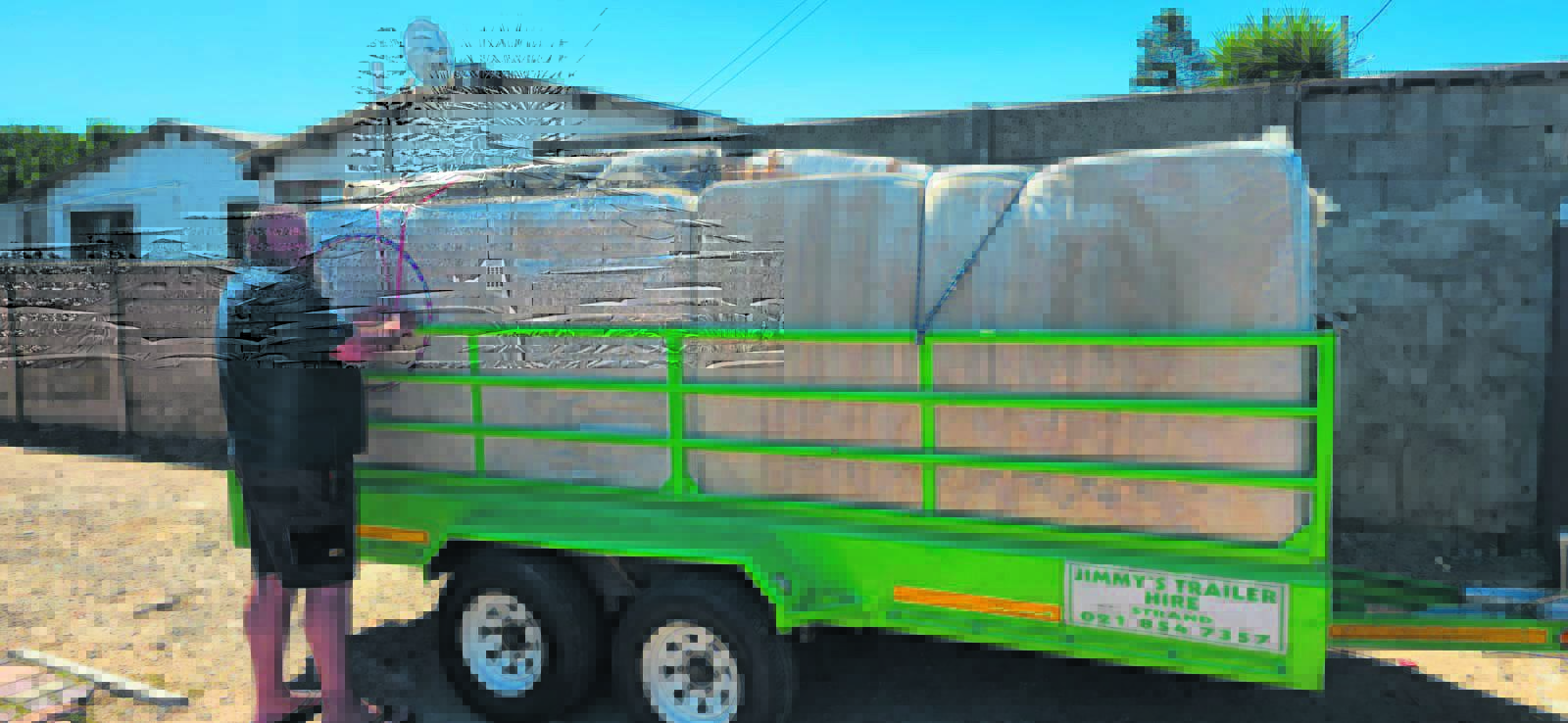 KC Gericke from Strand Patrol delivers mattresses to families affected by the Rusthof fire.