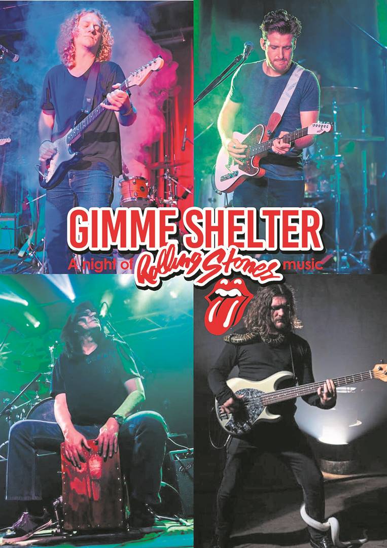 The Rolling Stones is die wêreld se oudste rock n roll-groep en waarskynlik een van die mees invloedryke groepe van alle tye. Vier van Kaapstad se topmusikante bring hulde aan The Rolling Stones en het al voor uitverkoopte gehore reg oor die Wes-Kaap opgetree. Die musikale skouspel Gimme Shelter Unplugged: A Night of Rolling Stones Music, word aangebied deur Jake Gunn, Ruben Gerritz, Lenny Miskin en Wouter Reyneke. Rolling Stones-volgelinge kan verwag om al hul gunstelinge te hoor, soos “Jumpin’ Jack Flash”, “Honky Tonk Woman” en “Wild Horses” en selfs ’n paar wat hulle nog nie vantevore gehoor het nie. Moenie die vertoning om 19:30 op Donderdag 4 April misloop nie. Kaartjies kos R200/R220.