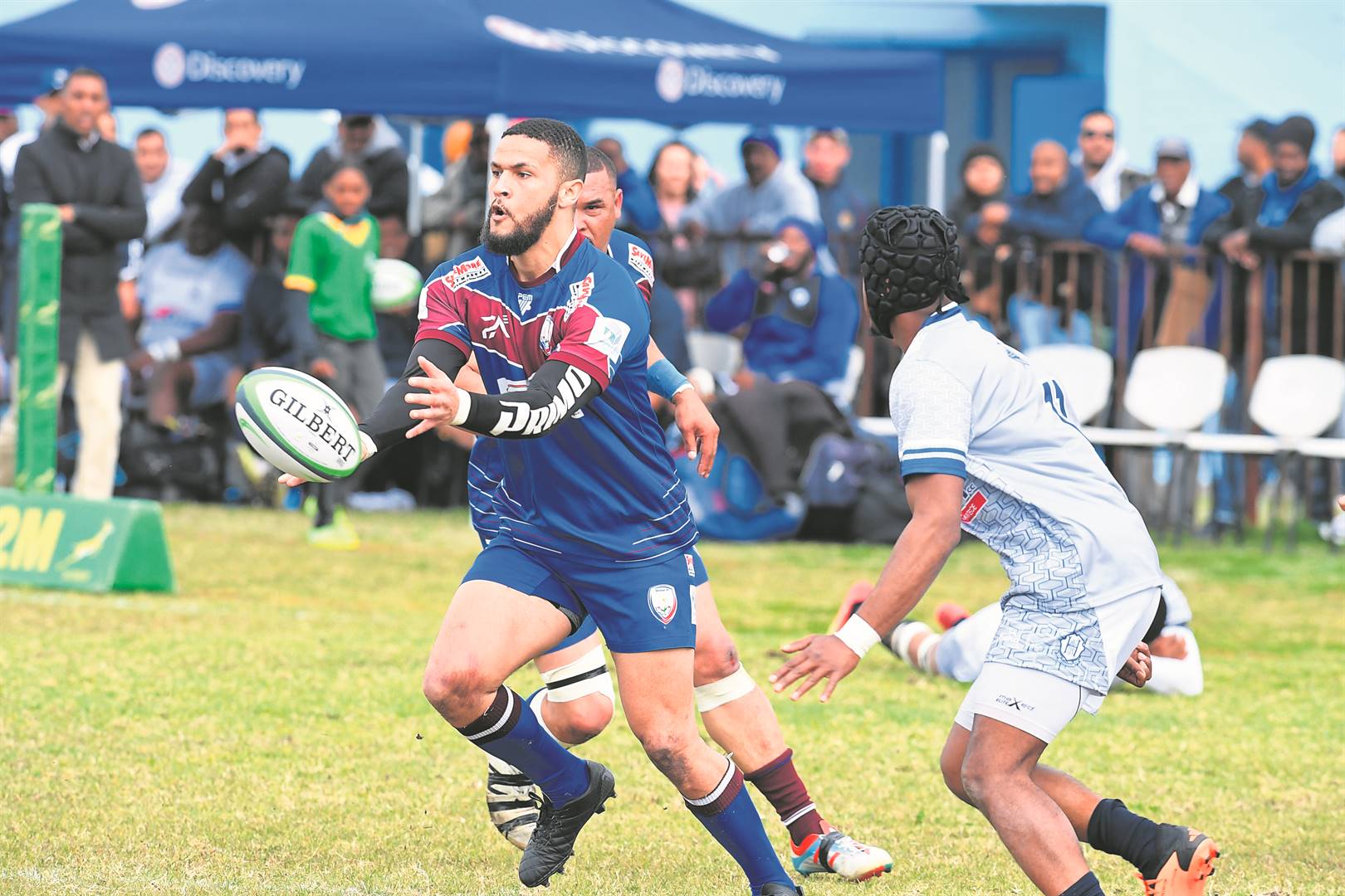 Inside centre for Macassar Howard Lottering gets his pass out.