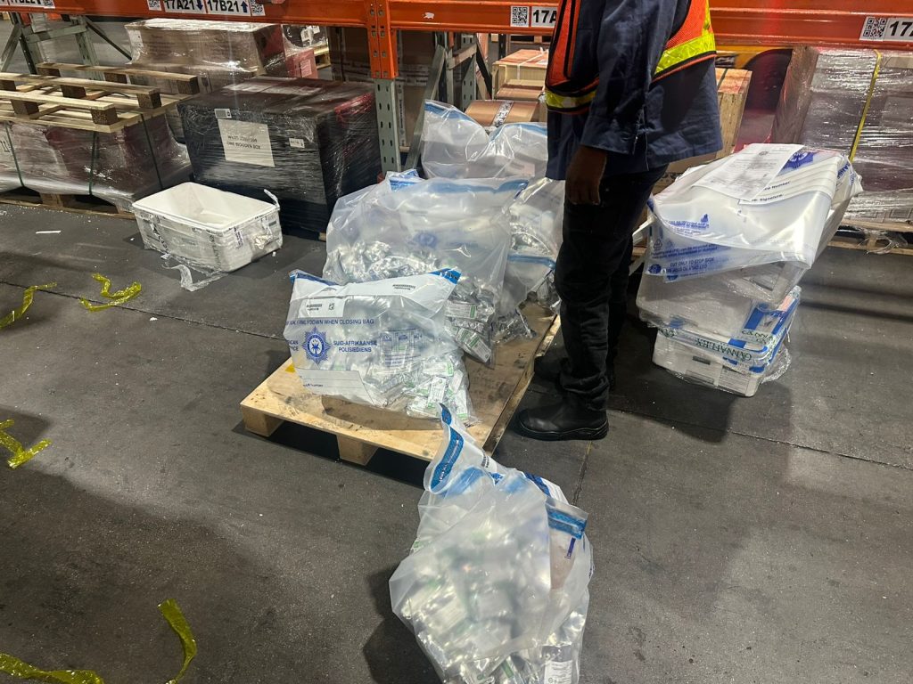 Two discoveries were made this week during routine searches through warehouses. In the first instance crystal meth worth R2,2 million was found on Wednesday 4 March at a cargo warehouse at the airport. The meth was destined for the Philippines, from South Africa.