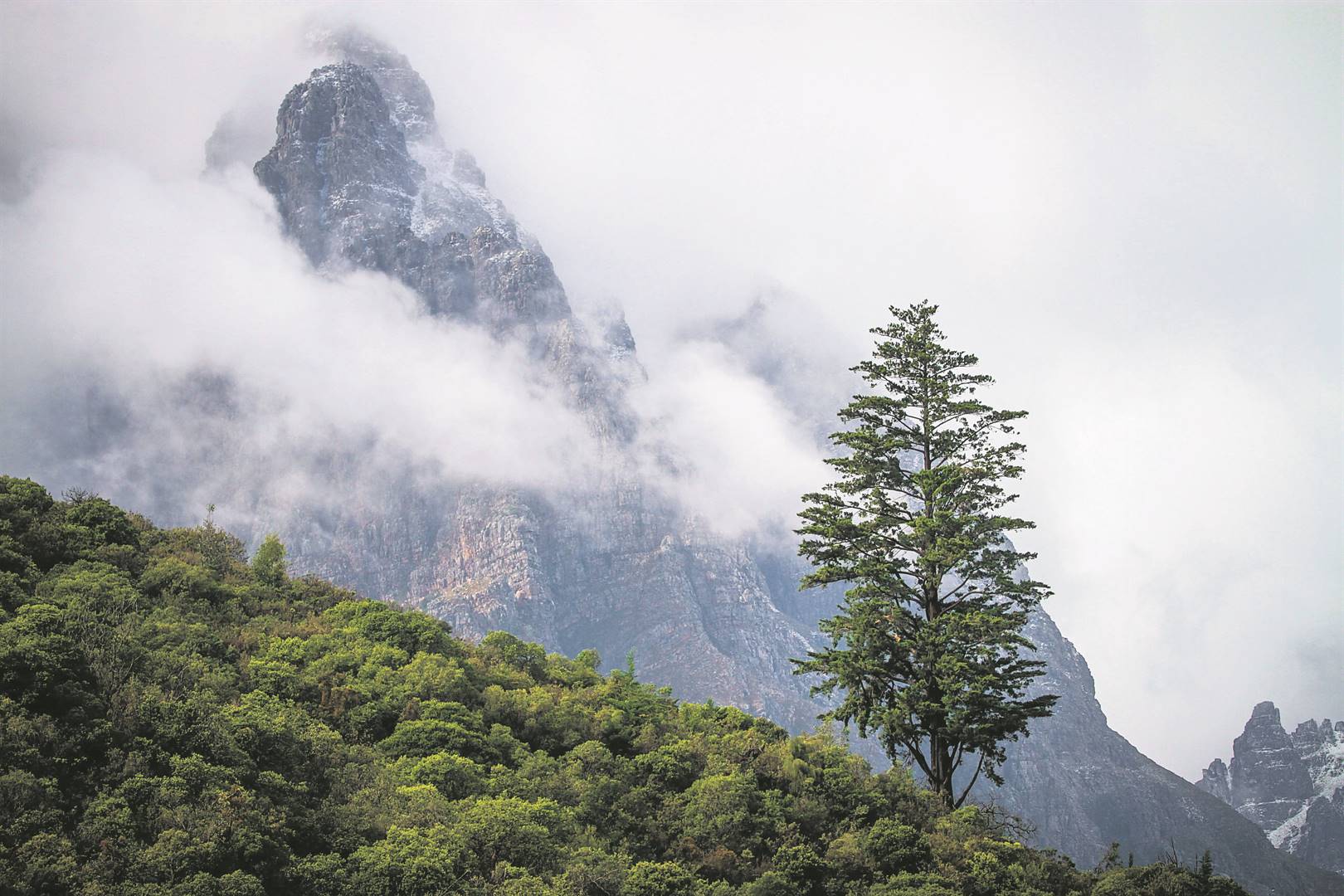 Reën, hael en sneeu het die afgelope naweek in die Boland geval en ’n bibberende week tot gevolg gehad. Die Suid-Afrikaanse Weerdiens het Sondag (7 Julie) gewaarsku dat vee en gewasse in die slag kan bly weens die sneeu wat geval het. Die Helshoogstepas was ook Sondag tydelik gesluit nadat die stormweer en ys tot padongelukke gelei het. Die Franschhoekpas was ook gesluit weens die sneeu. Die Stellenbosch-munisipaliteit het plaaslike inwoners gemaan dat die Eersterivier sterk vloei. Volgens die Weerdiens sal ’n reeks kouefronte die Wes-Kaap na verwagting die res van die week tref, wat tot swaar reënbuie, sneeu en koue toestande sal lei.Foto: Francois Lombard
