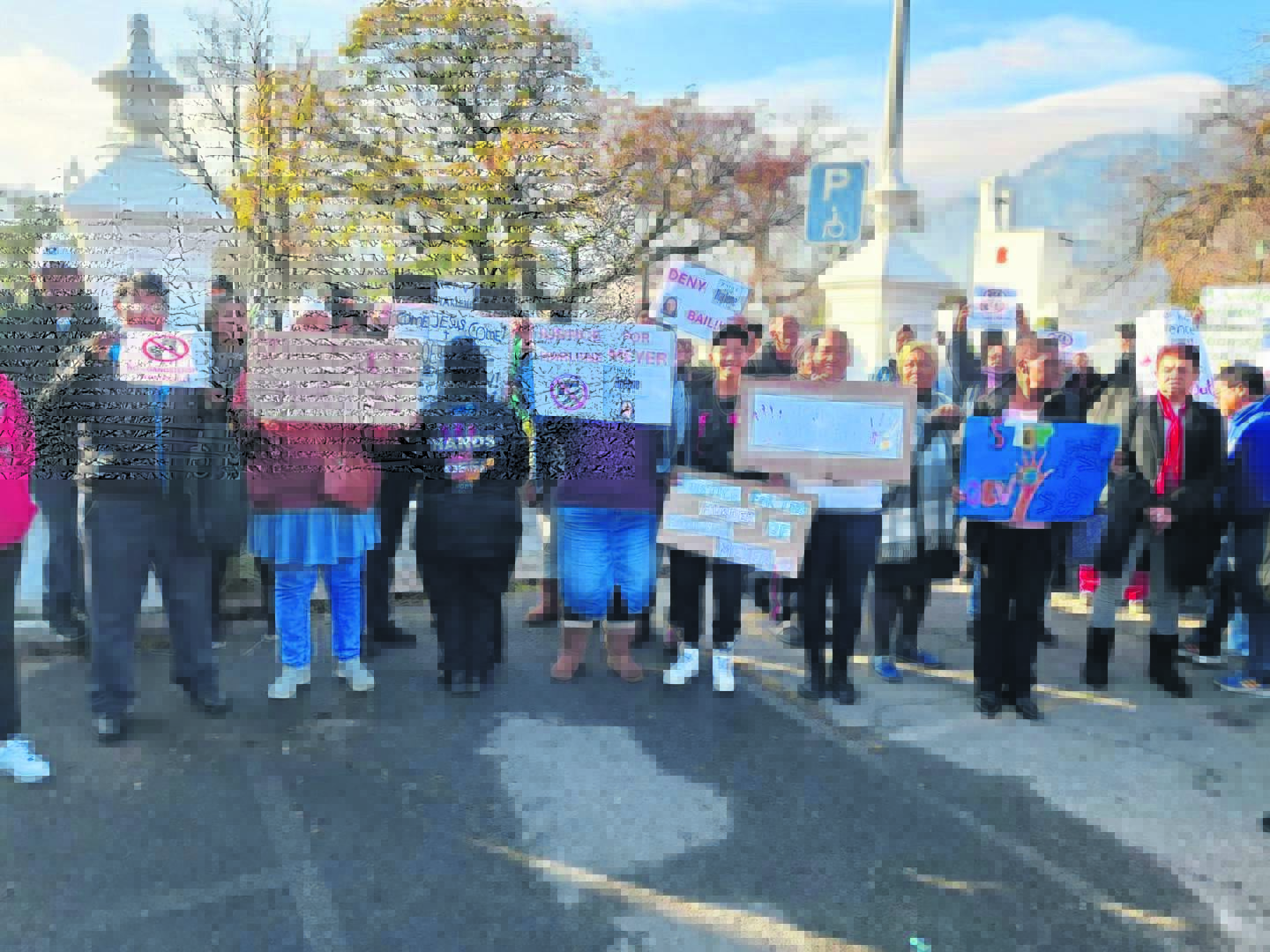 Gemeenskapslede van Cloetesville het Dinsdagoggend (2 Julie) na die plaaslike hof opgeruk vir die verskyning van Francois Cyster (28), Ralton Oliphant (28), Gerschwin Barends (28) en Marco Cedras (23). Die vier verdagtes word verbind met die dood van Harlene Meyer (49) wat verlede Woensdag (26 Juine) op pad werk toe afgemaai is. Gemeenskapslede het ’n versoekskrif aan die hof oorhandig om die vier se borgtog teen te staan. Die saak is tot Dinsdag 9 Julie uitgestel. Lees meer op bl. 2. Foto: