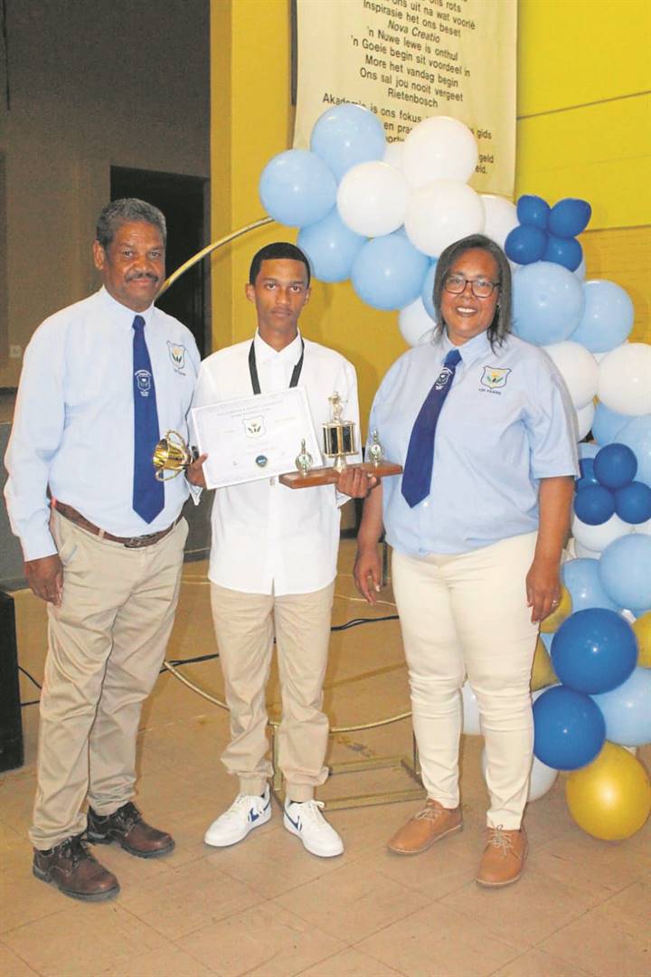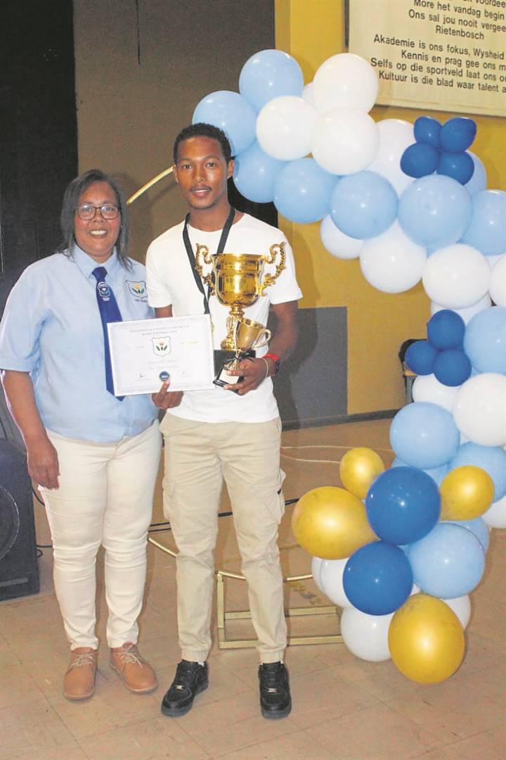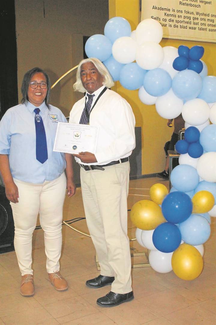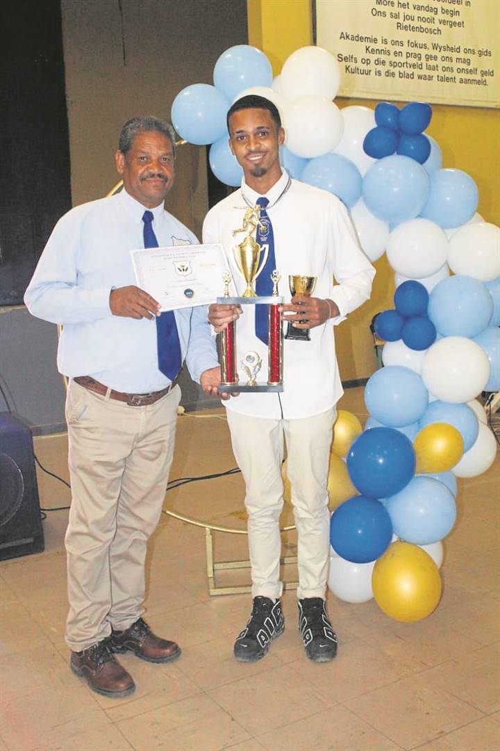 Aiden Hendricks (right) was named the best forward player in the second team. Vice-chairperson James Manual, who received the award for most loyal executive member, handed over his prizes.