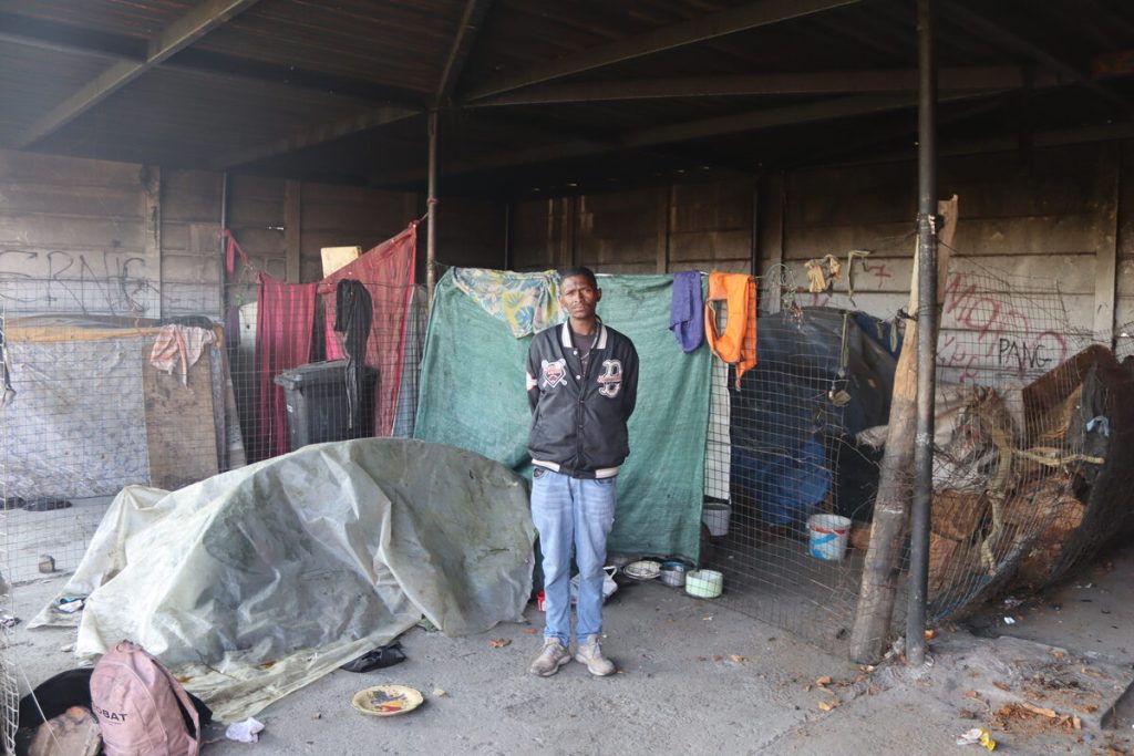 Marco, sy vriendin en hul twee maande oue baba slaap saans onder ‘n seil onder die afdak. Sy broer, Marshall (27), is ook onder die bewoners van die noodkamp en vertel op sy beurt hoe die klein gemeenskap weens ‘n gebrek aan dienste swaarkry.
